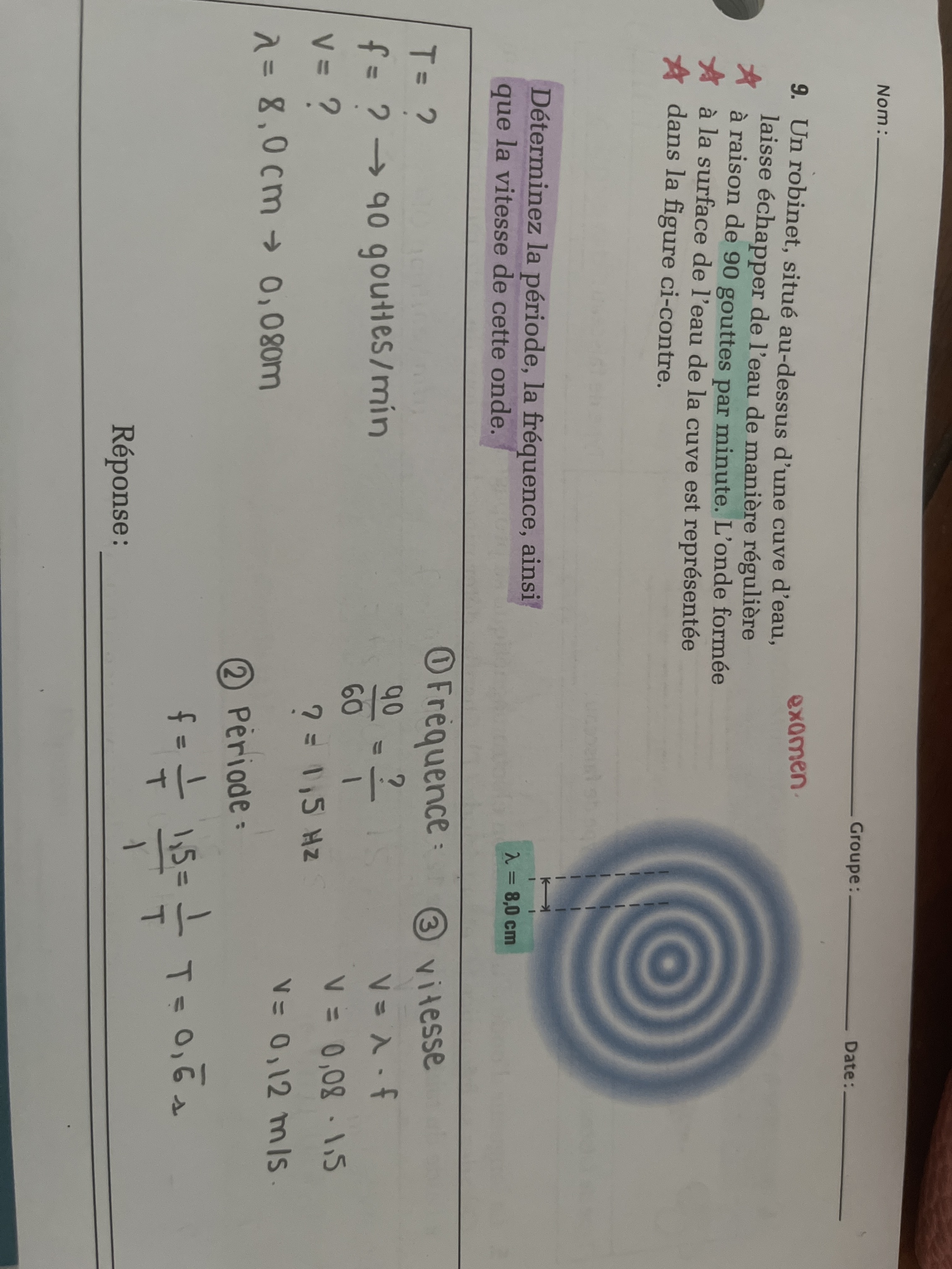 Secondaire 5 • 1aJe ne comprends pas pourquoi le 90 gouttes par minutes correspondant à la fréquence et pas a la période et comment on fait pour différencier la période a la fréquence dans un numéro comme celui-ci