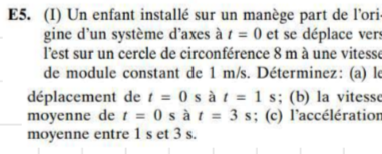 Postsecondaire • 1aLa réponse à cette question pour le deplacement, l'accélération et la vitesse est donnée en coordonnées cartesiennes. Par contre, pour un mouvement circulaire uniforme je ne sais pas comment les trouver de cette façon. Pourriez vous m'aider ?