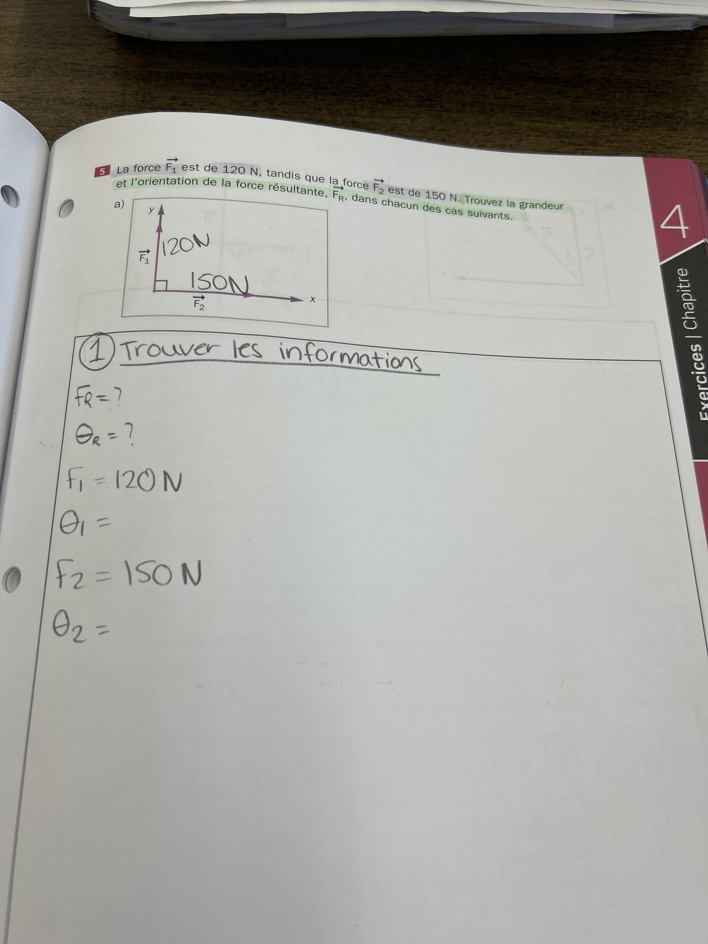 Secondaire 5 • 1aBonjour je me demandais si l’angle de la force 1 et 2 sont les deux 90 degré ?
