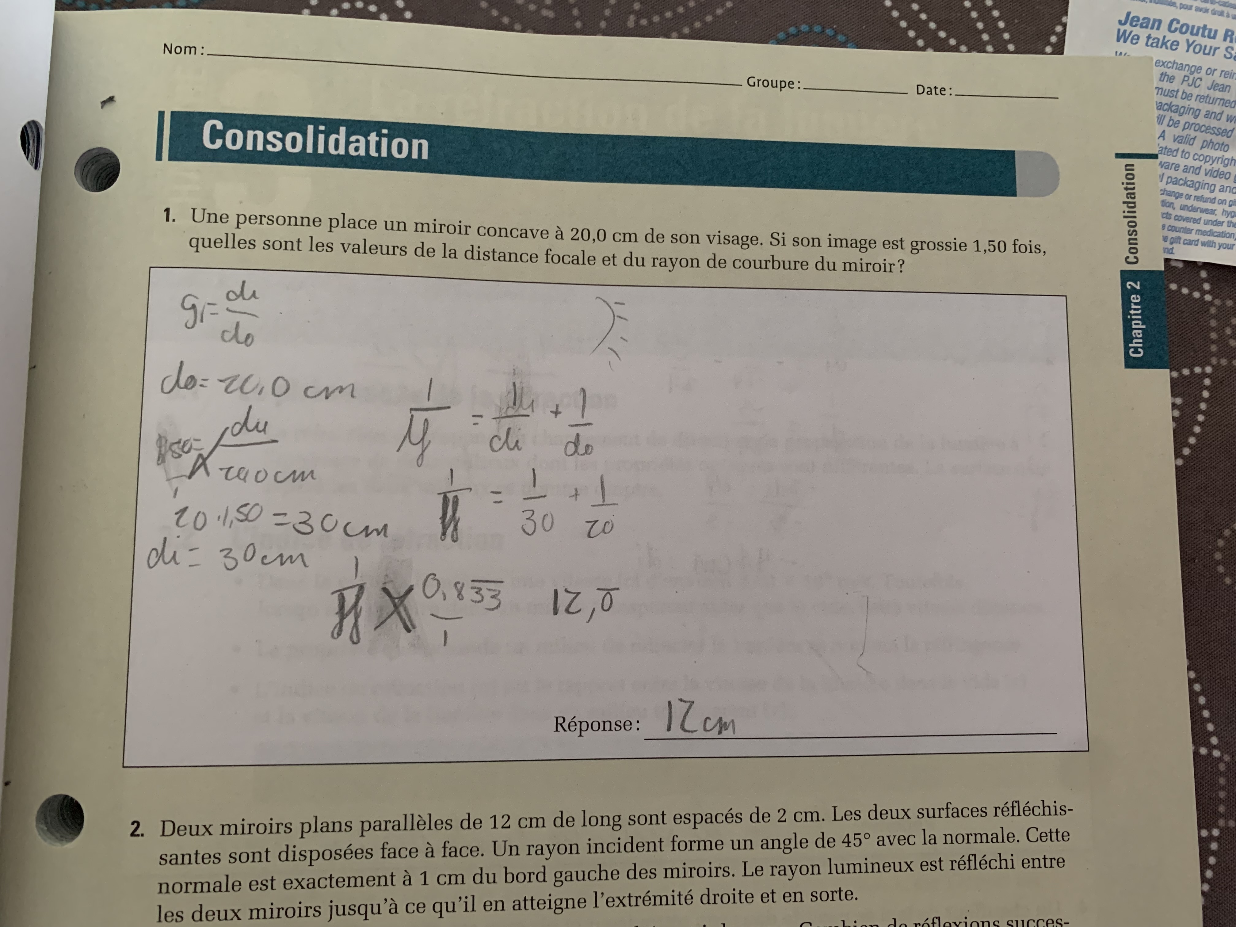 Secondaire 5 • 1aBonjour, comment calcul-t-on le rayon du miroir convexe dans ce numéro?