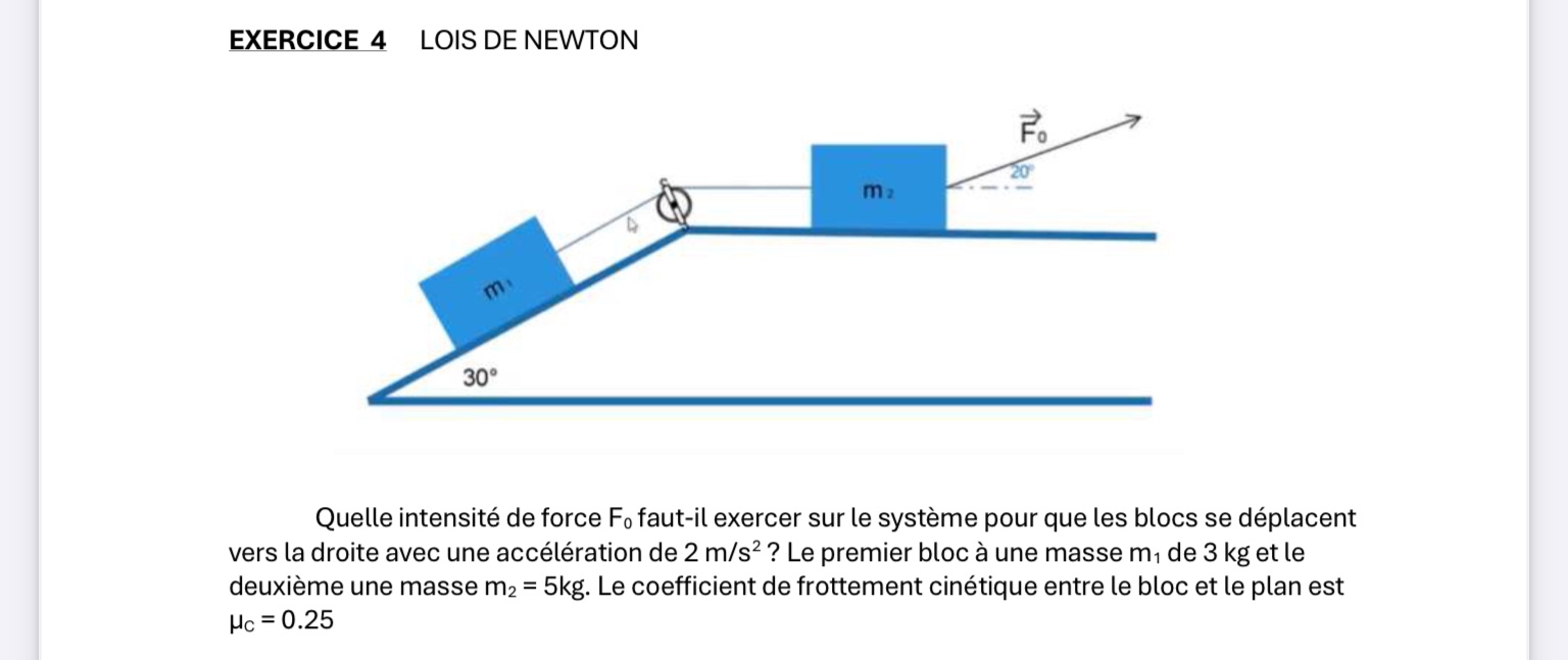 Secondaire 5 • 1aPouvez-vous m’expliquer ce numéro ? J’ai du mal à utiliser la force de frottement dans les deux blocs pour trouver l’intensité de force.