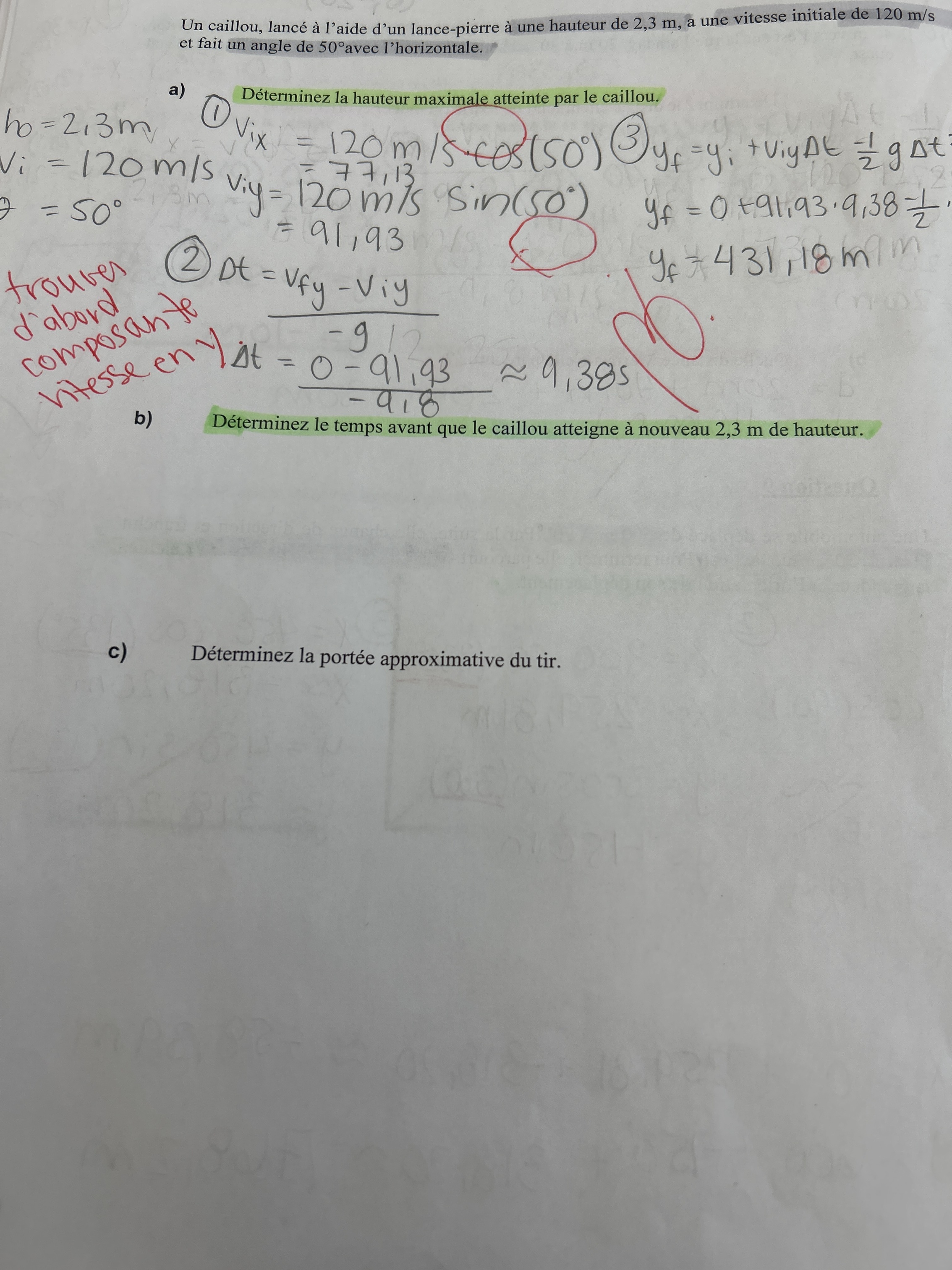 Secondaire 5 • 1aBonjour je ne comprends pas comment trouver le temps je sais pas quel formule utiliser? Est-ce que vous pouvez m’aidez s’il vous plaît ? Pour le b et c