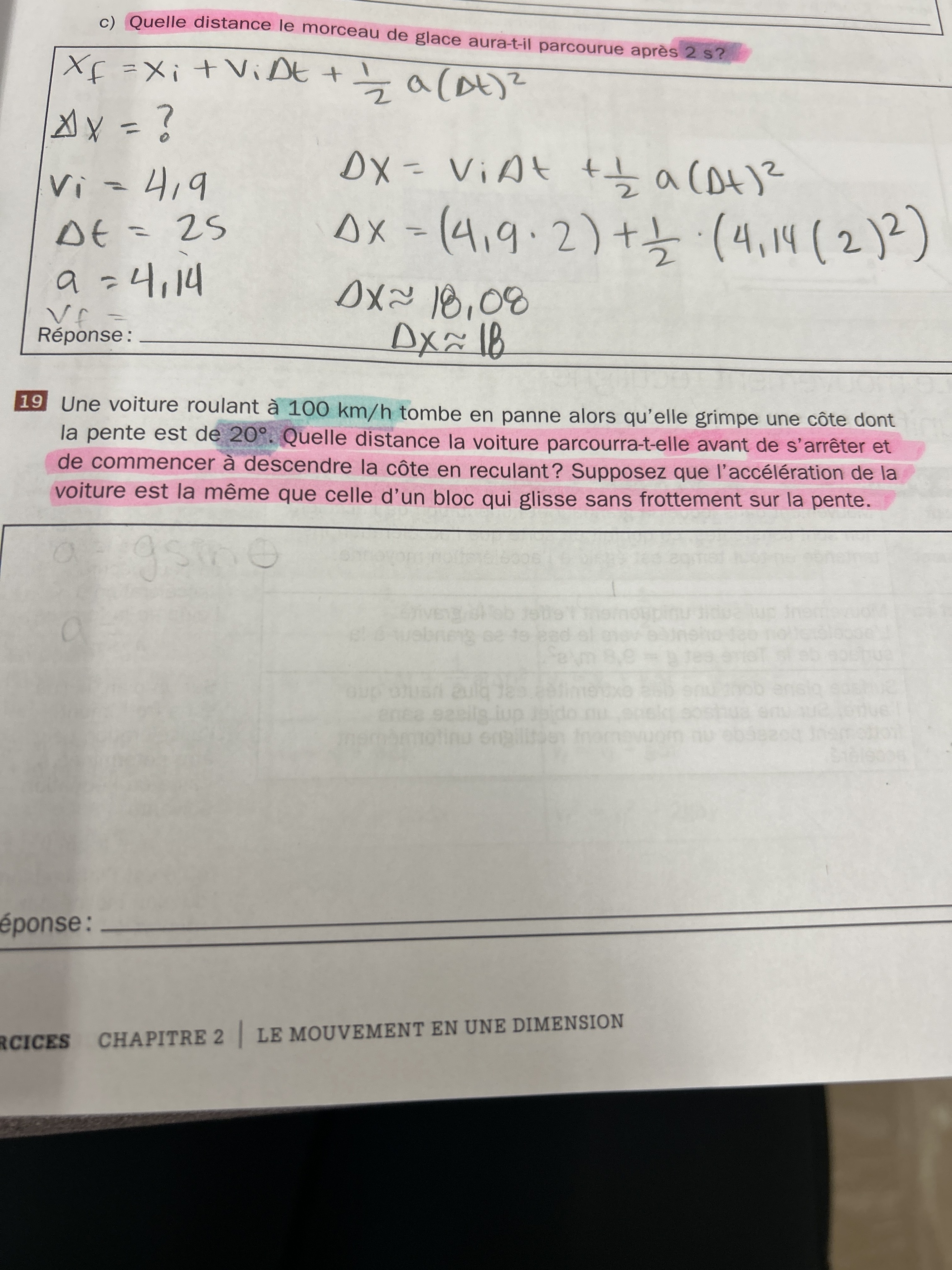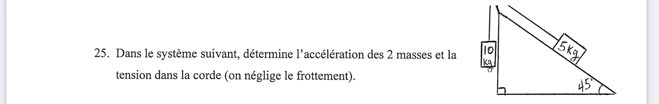 Secondaire 5 • 1aJe ne suis pas sûr si ma démarche est bonne ou mauvaise. Ce problème ne tient pas compte des forces de frictions.