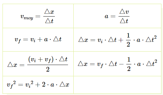 Secondaire 5 • 1aL'accélération dans la formule du MRUA (celle dans la colonne de droite au milieu avec delta x = vix ...) est-elle négative (-9,8) ou positive (9,8)?