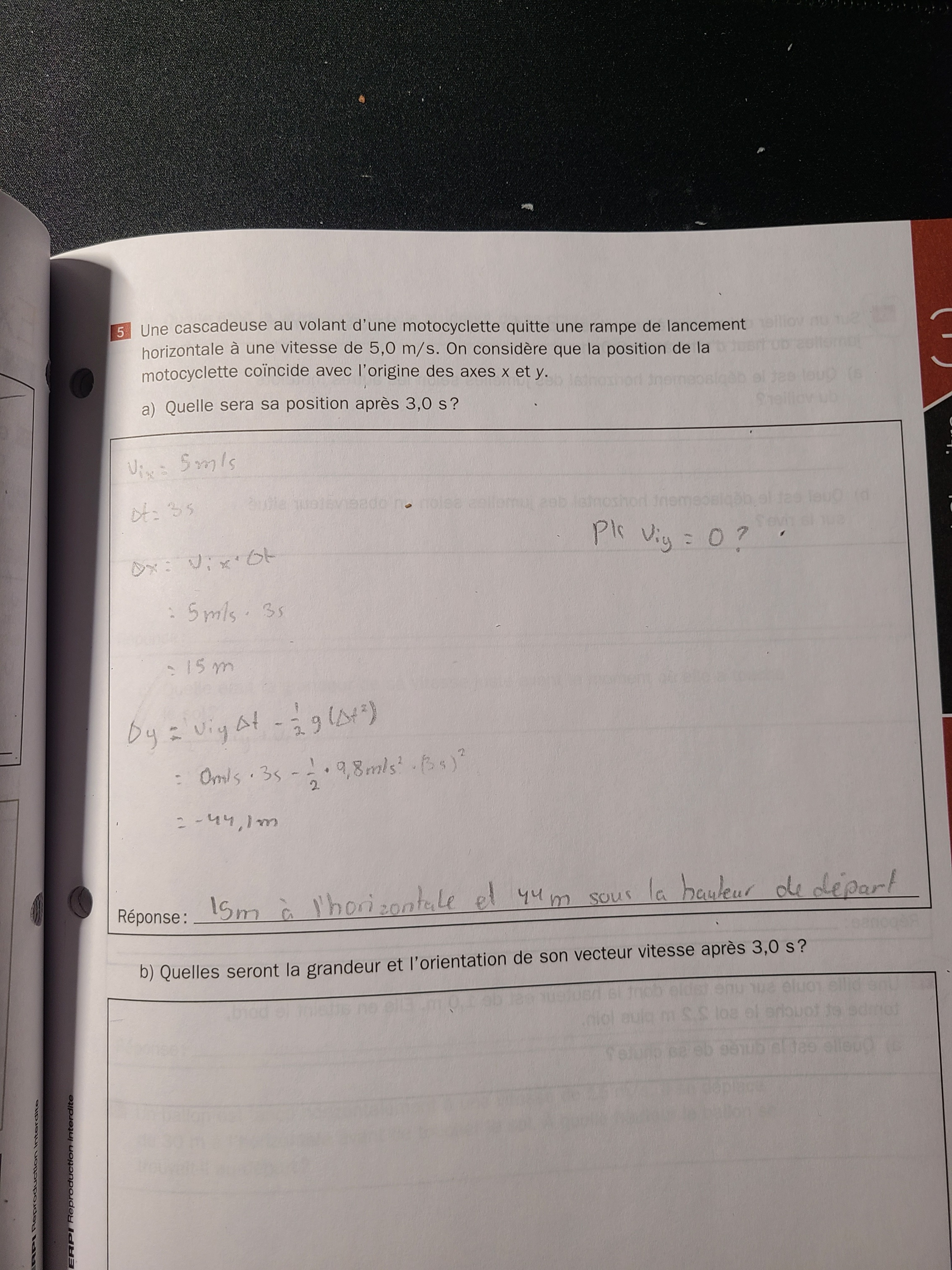 Secondaire 5 • 1aLa composante verticale c’est la vitesse en le delta y?