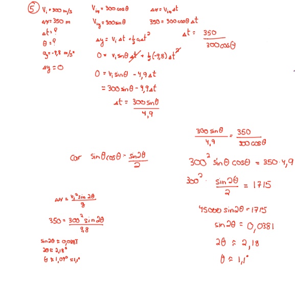 1. On propulse un missile à une vitesse de 600 m/s, faisant un angle de 30 avec l'horizontale, en supposant que pour l’ensemble du mouvement on a yi = yf . a) Quelle est la hauteur maximale atteinte par le missile? b) Quelle est la portée (le déplacement horizontal maximal effectué par le missile) sur un terrain plat?