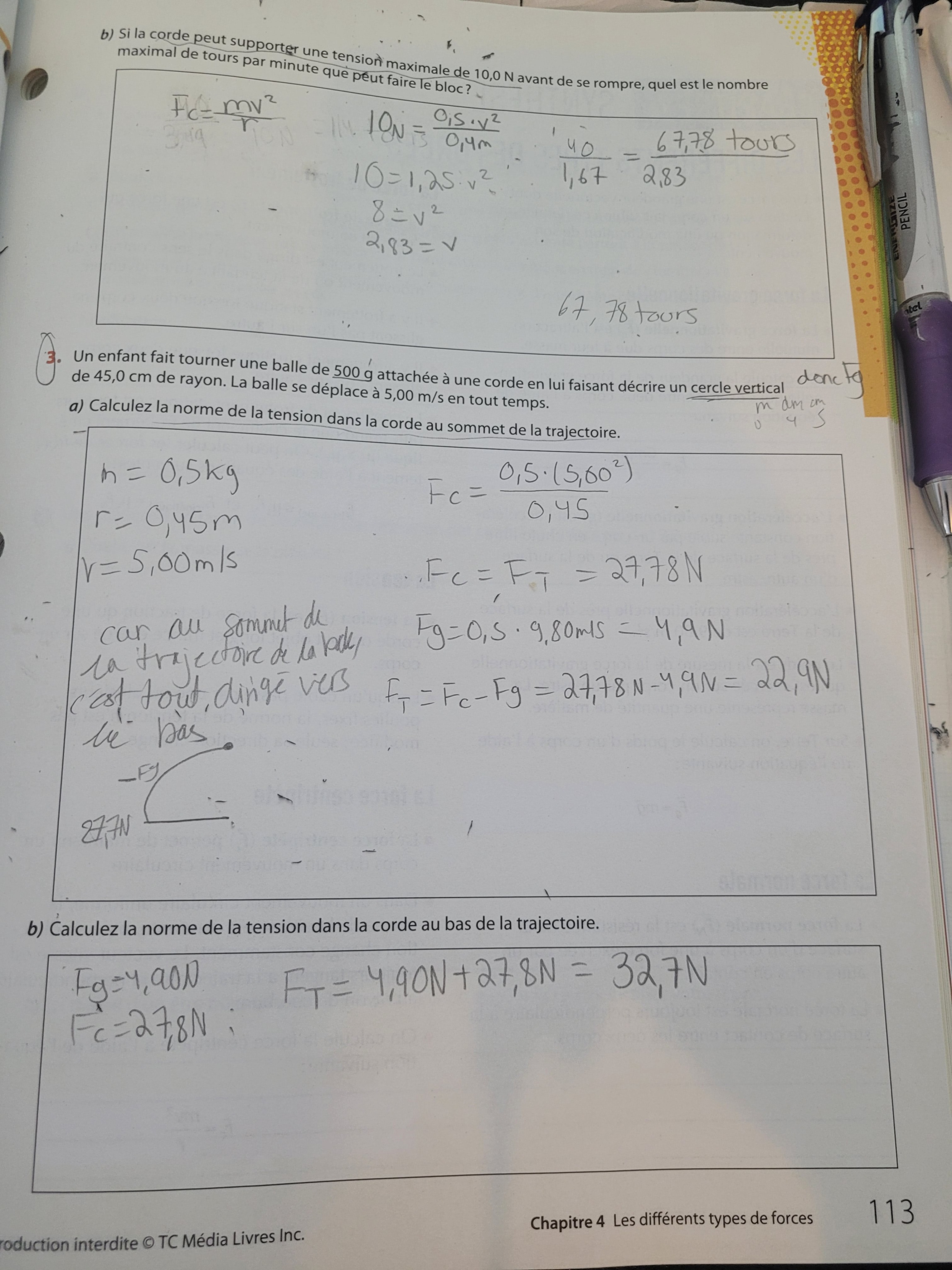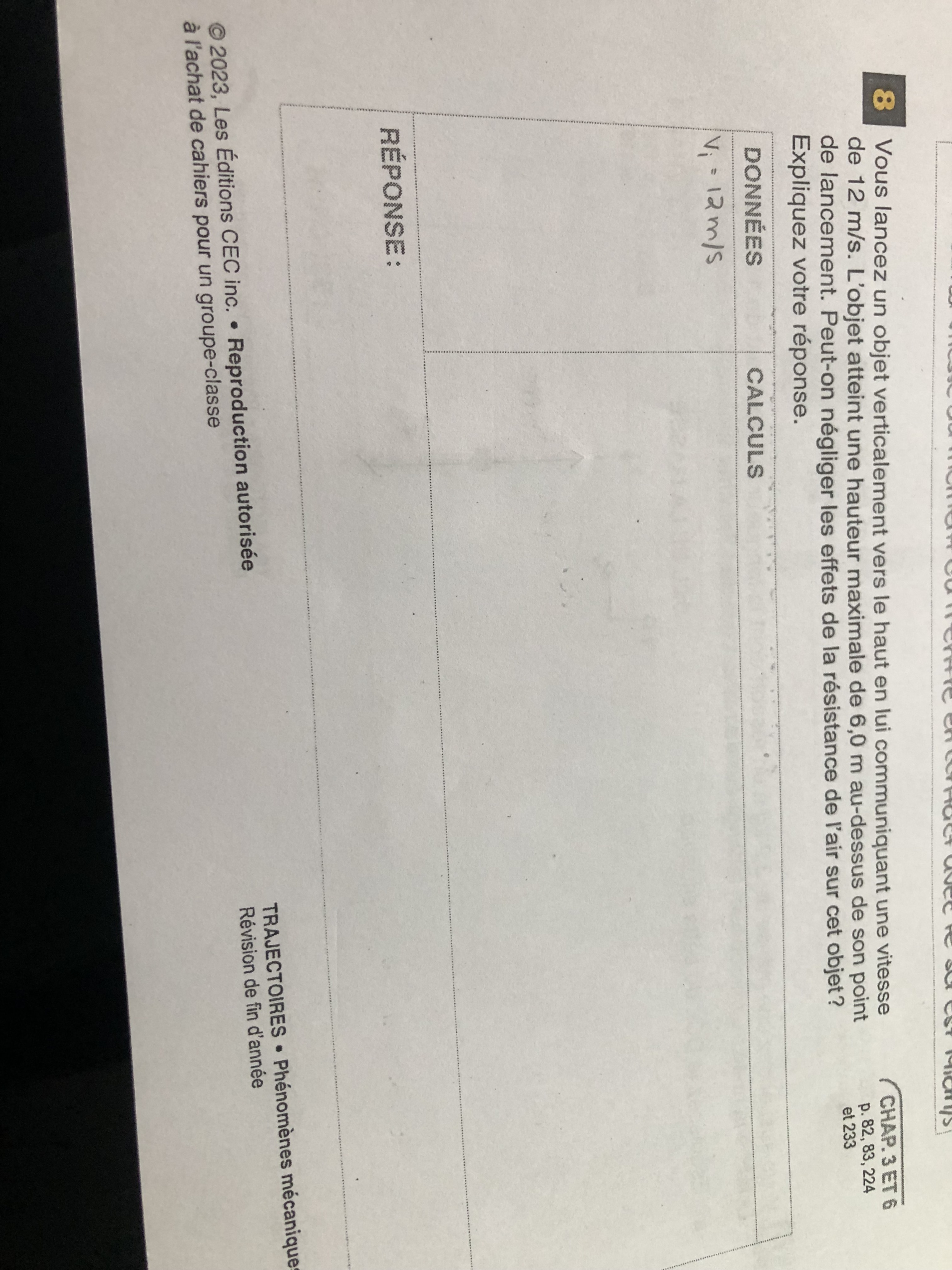 Secondaire 5 • 1aCa vient des exercices du manuel Quantum Physique pour le secondaire 5