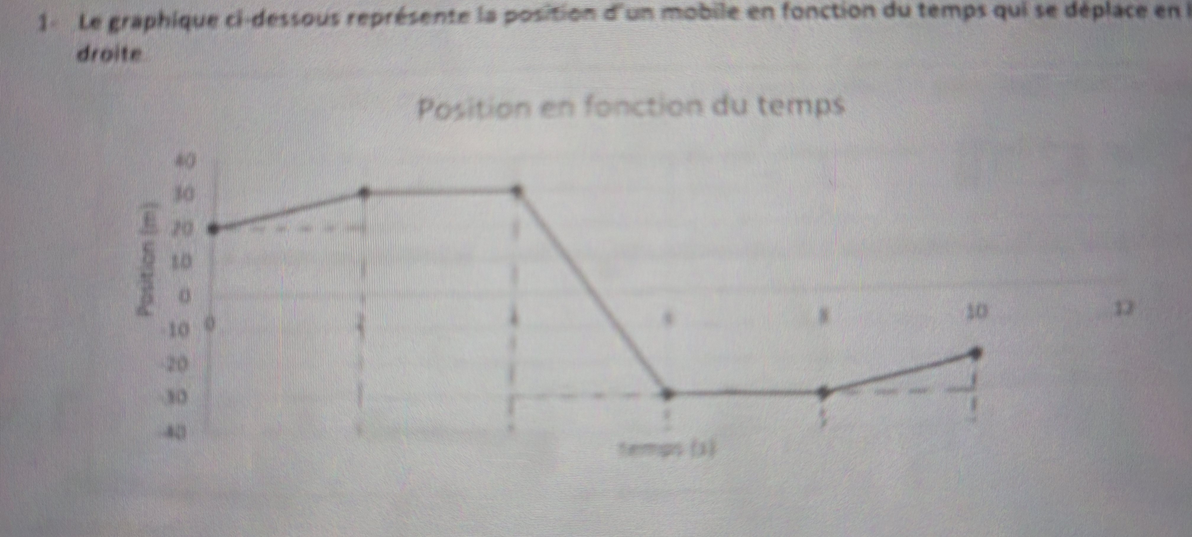 Secondaire 5 • 1aBonjour, pouvez vous m’aider à interpréter de graphique position en fonction du temps. Par exemple de 0 à 2s quelle déplacement l’objet a fait. Merci!