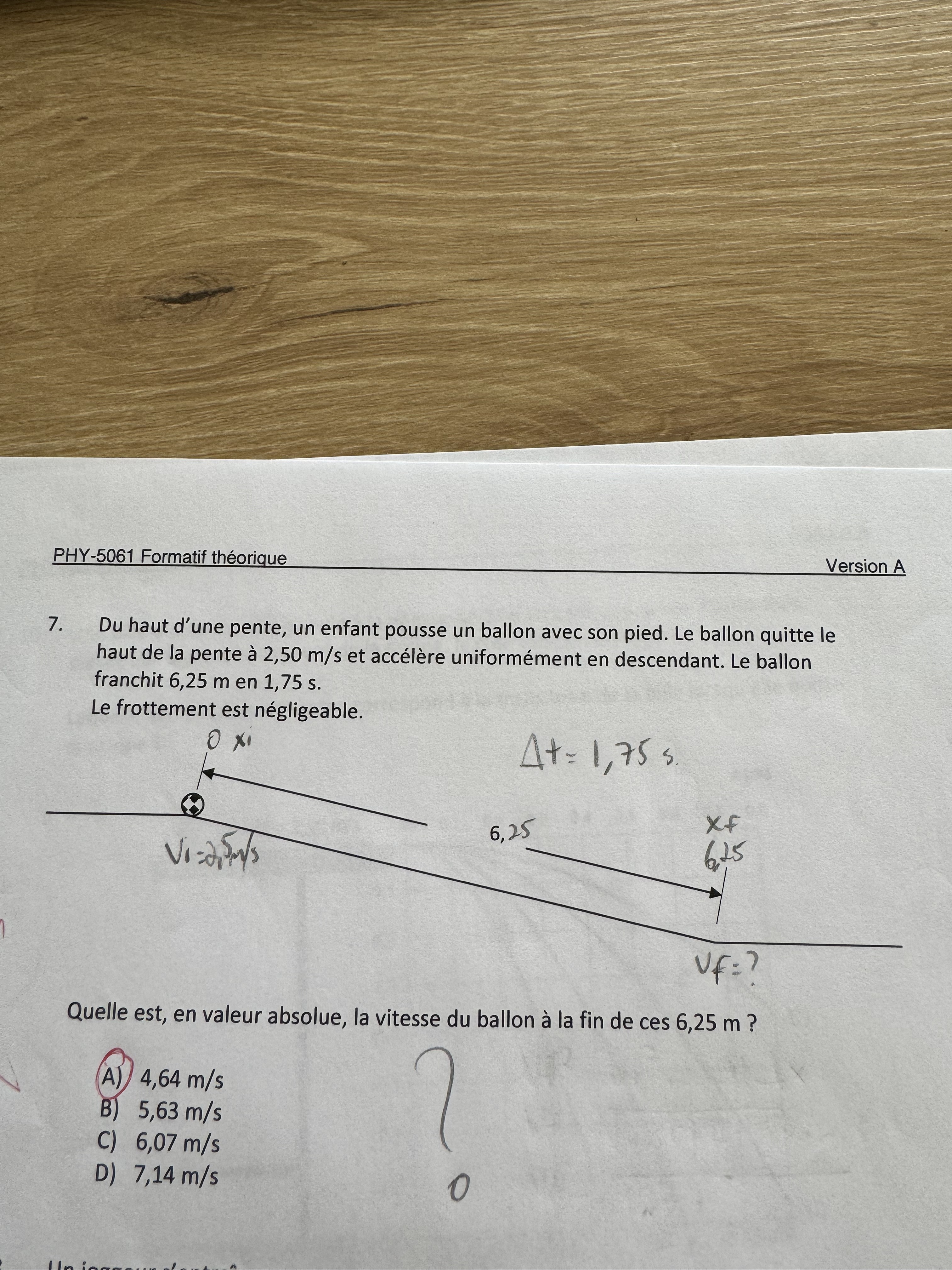 Secondaire 5 • 1aBonsoir, Juste pour verifier que j ai bien eue la bonne réponse, pourriez vous me dire ça vous a donner combien la grandeur du deplacemeny total du mobile ainsi que la distance parcourue par le mobile svp? Et pourriez vous me montrer ça a l'air de quoi le graphique de la vitesse de ce mobile en fonction du temps? Votre réponse m'aidera bcp!!! Merci!