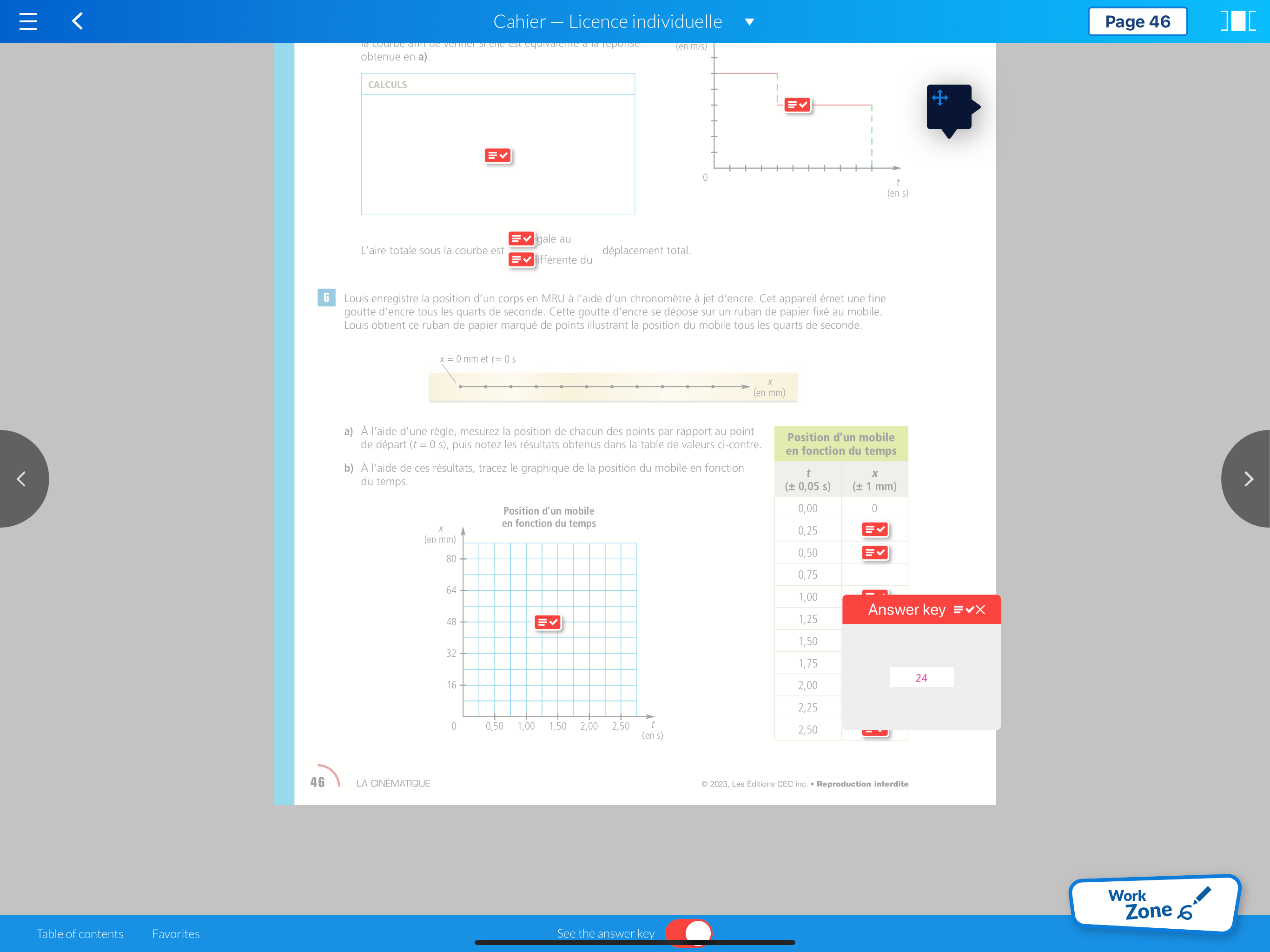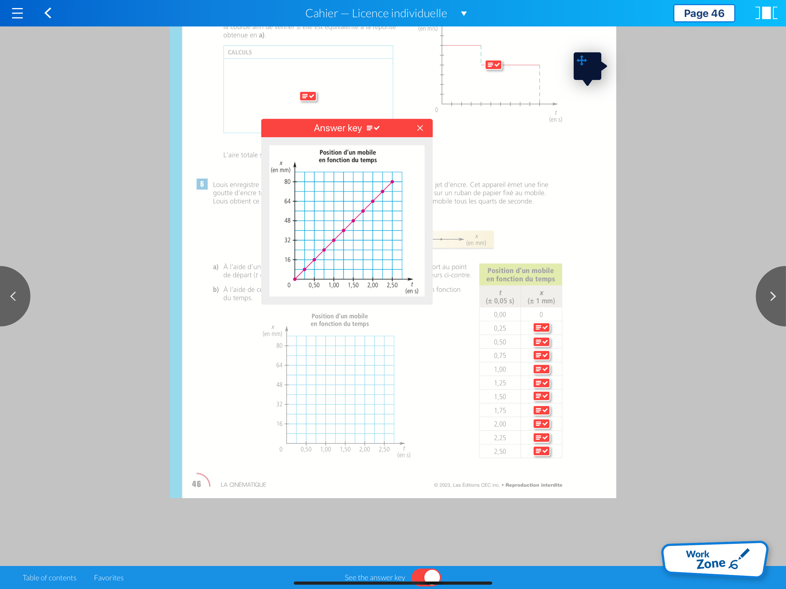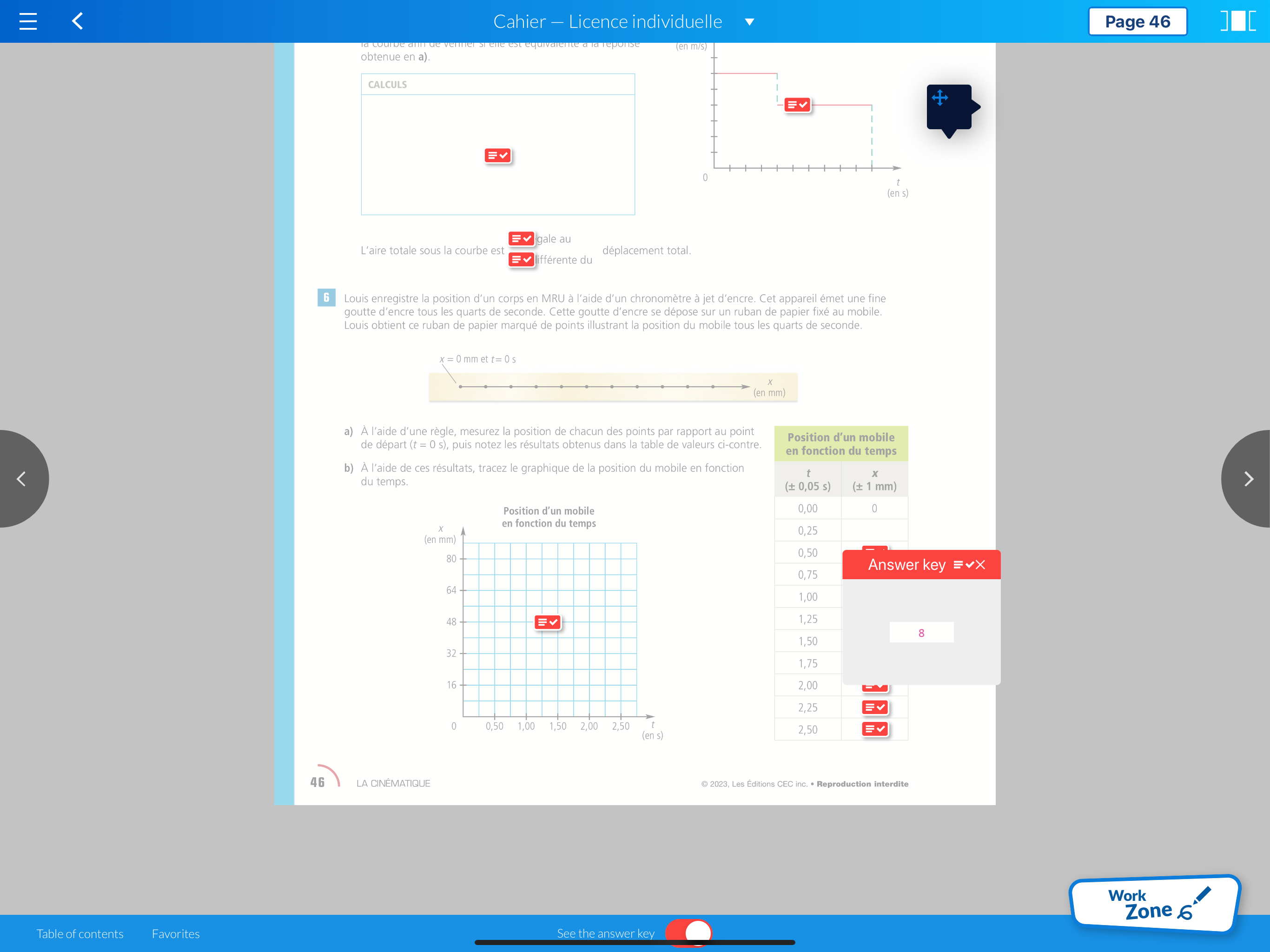 Secondaire 5 • 1aVoici le corrigée d’un problème dans mon cahier d’exercice Trajectoire en physique sec5 dans le sujet de la cinématique. Le problème dit qu’un appareil émet une fine goutte d’encre à tous les 4 secondes et la questions ne demande ensuite de mesurer la distance en mm avec une règle entre chaque gouttes ou la premières gouttes représentés 0s et 0mm. Quand j’ai mesuré j’ai trouver qu’à chaque 4secondes le mobile de déplacé de 8mm. Cependant dans le corriger, la table de valeurs du corriger contredit cela en disant qu’à 0,25 secondes, le mobile est à 8mm et à 0,50s, le mobile et à 16 mm ainsi de suite. Je ne comprend pas comment ils peuvent affirmer cela alors que il est claire que c’est à 4 secondes que le mobile et à 8mm???