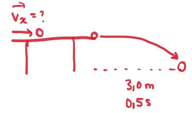 Secondaire 5 • 1aOn a une balle qui doit faire tomber une autre balle sur une distance d'au moins 3 m en 0,5 s. Quelle doit être la vitesse horizontalle initiale de la première balle pour satisfaire ces conditions?