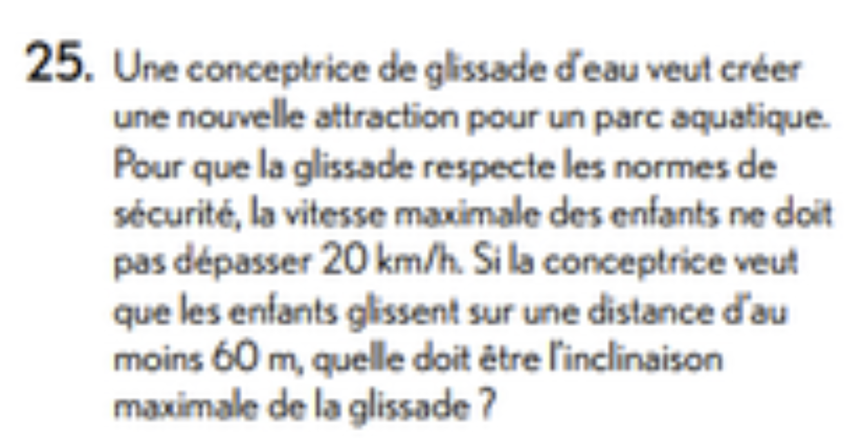 Secondaire 5 • 1aUn cycliste roule à une vitesse moyenne de 10 m/s sur le trajet qui sépare sa maison de l’école qu’il fréquente. À quelle distance de l’école habite-t-il si cela lui prend 20 minutes pour s’y rendre chaque matin ?