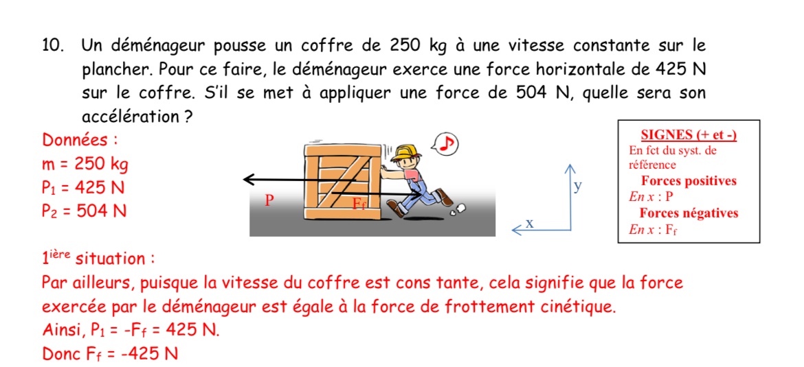 Secondaire 5 • 1aJe ne comprends pas pourquoi la force exercée est égal à la force de frottement si la vitesse est constante?