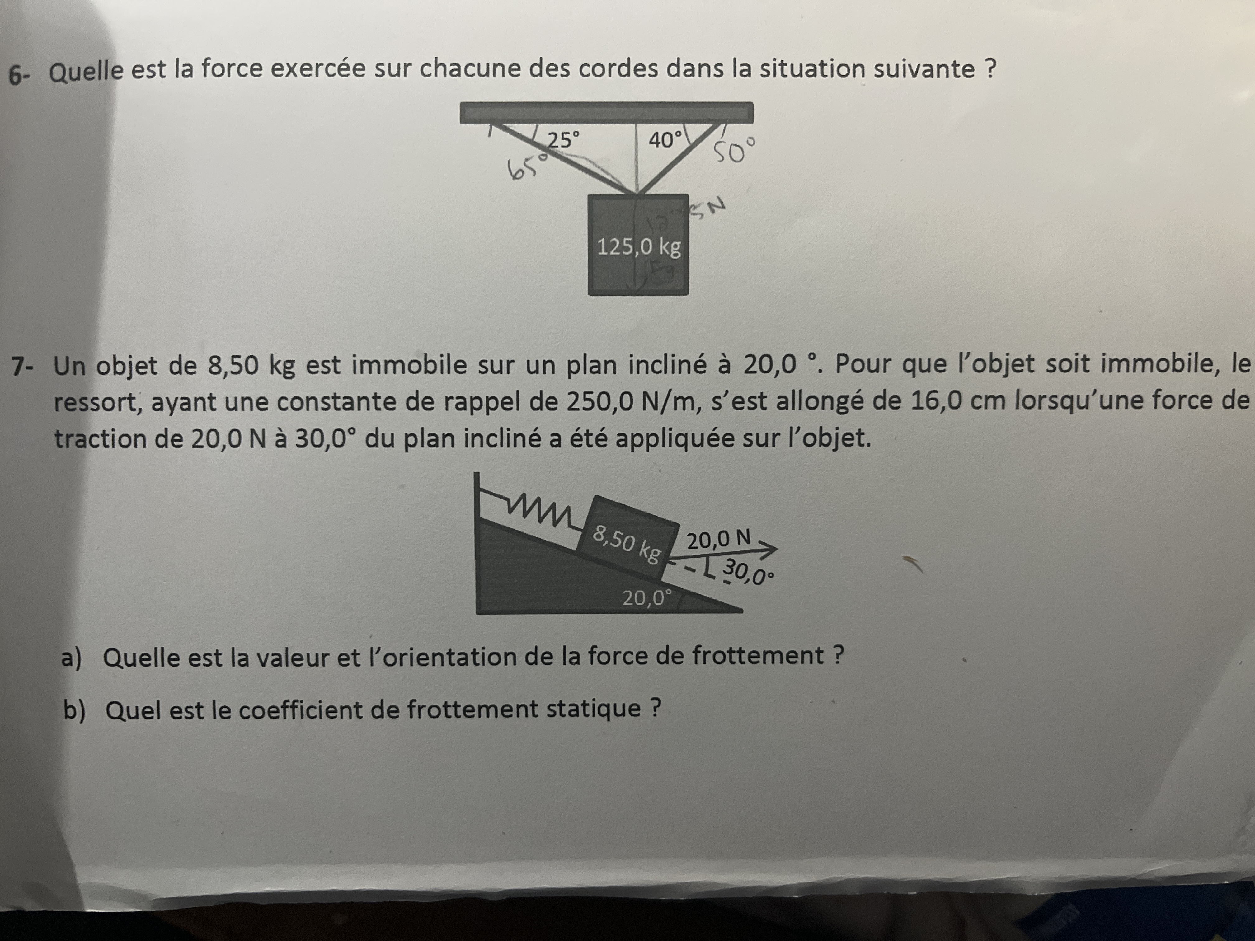 J’ai de la misère à dessiner un schéma des forces pour un numéro défi.