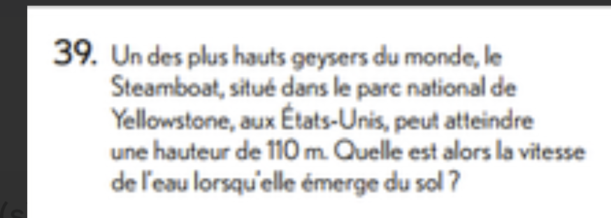 Secondaire 5 • 1aBonjour! Je ne comprend pas cet exercice, on peut m'expliquer comment faire? La réponse est 46,4 m/s.