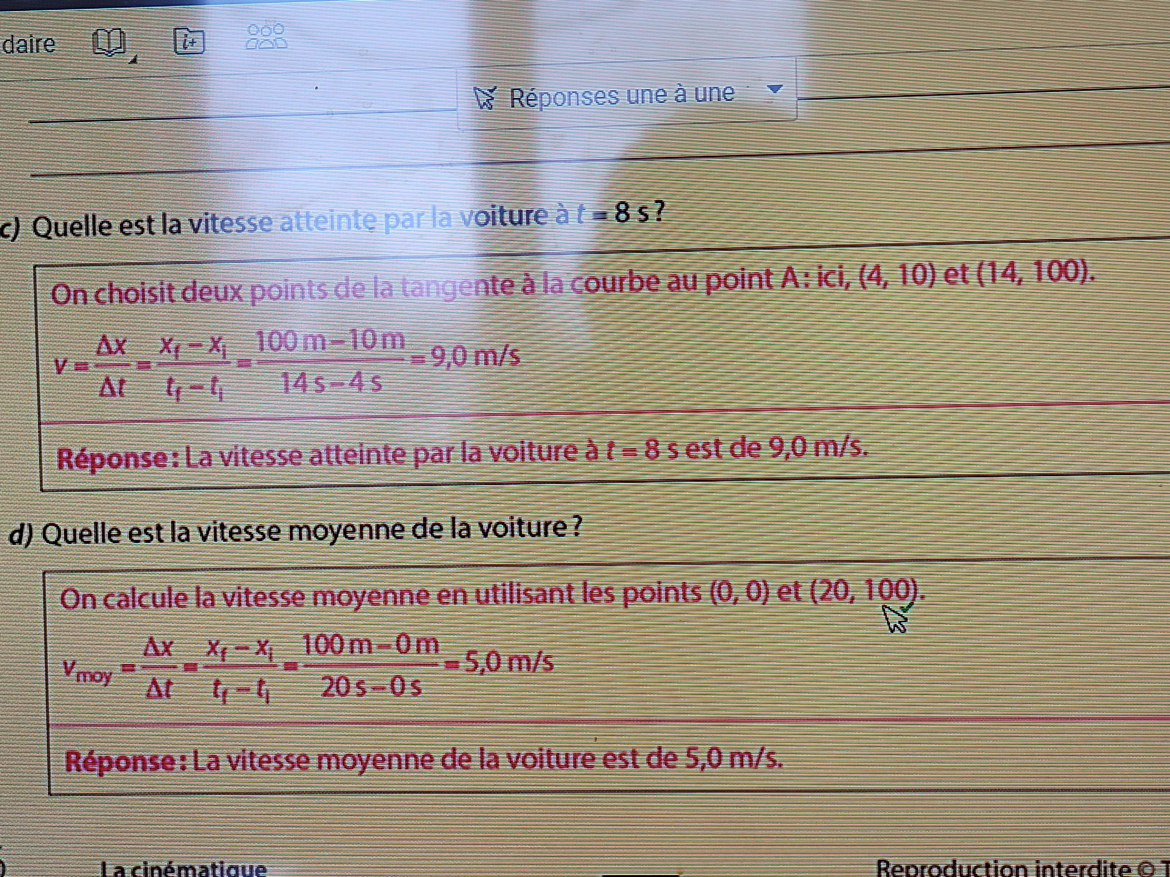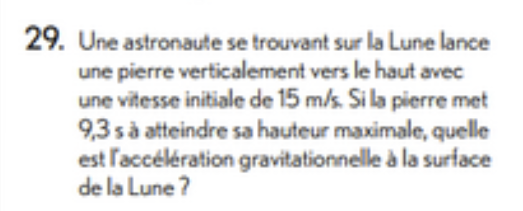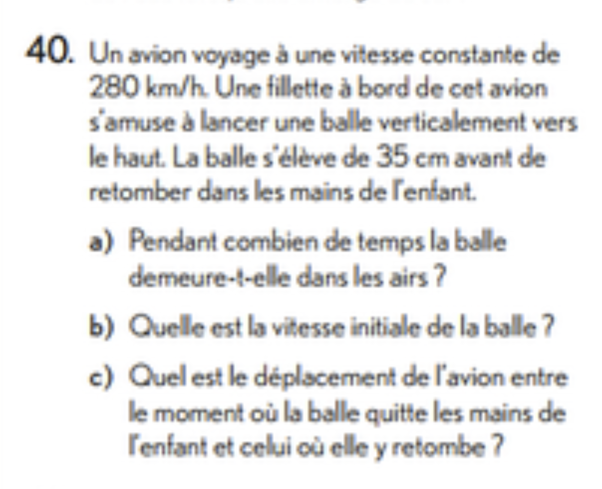 Comment se prendre à ce problème? Qu'est-ce qu'on fait avec la vitesse? J'aurais besoin d'aide.