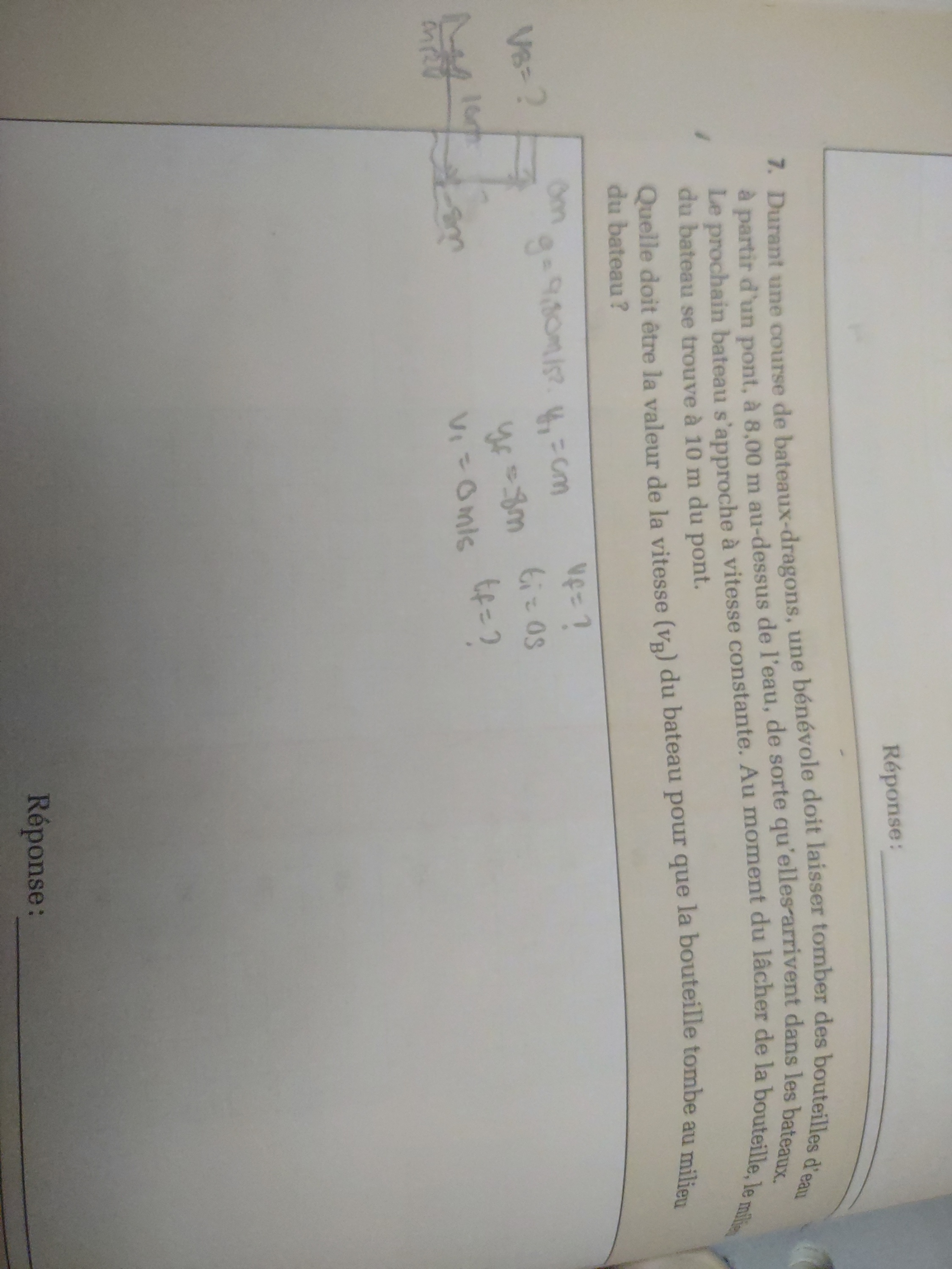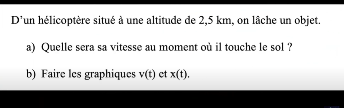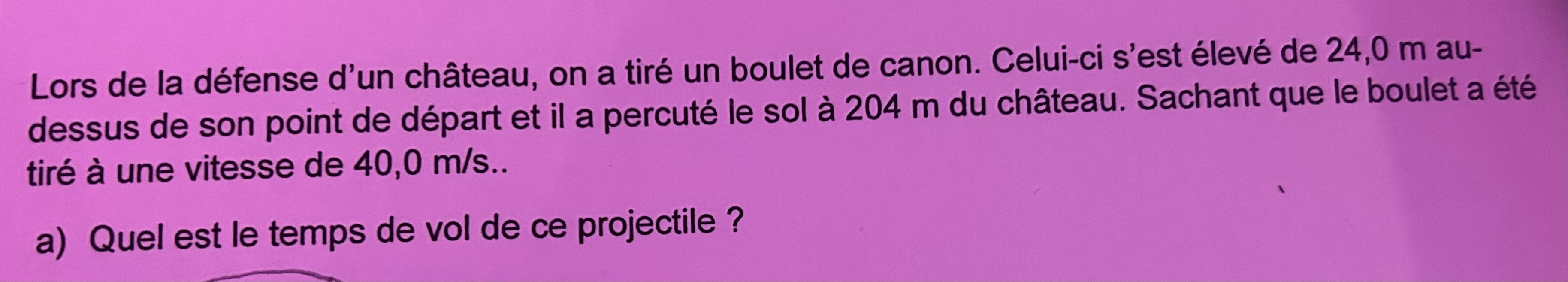 Secondaire 5 • 1aBonjour, je n’arrive pas faire ce problème en physique portant sur les projectiles