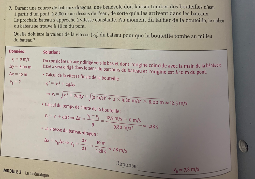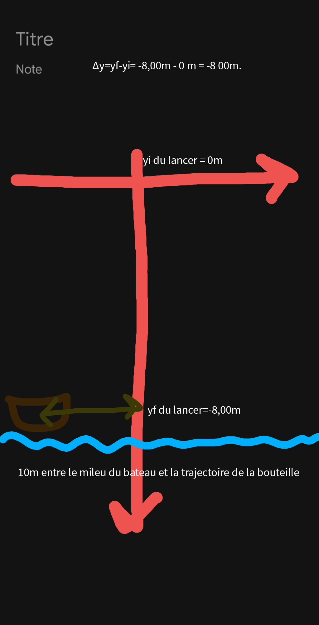 comment ca se fait que leur delta y est positif , alors que le yf=-8m , yi=0m selon leur axy y diirige vers le bas et que l origine c est le debut du mouvement de la bouteille ?