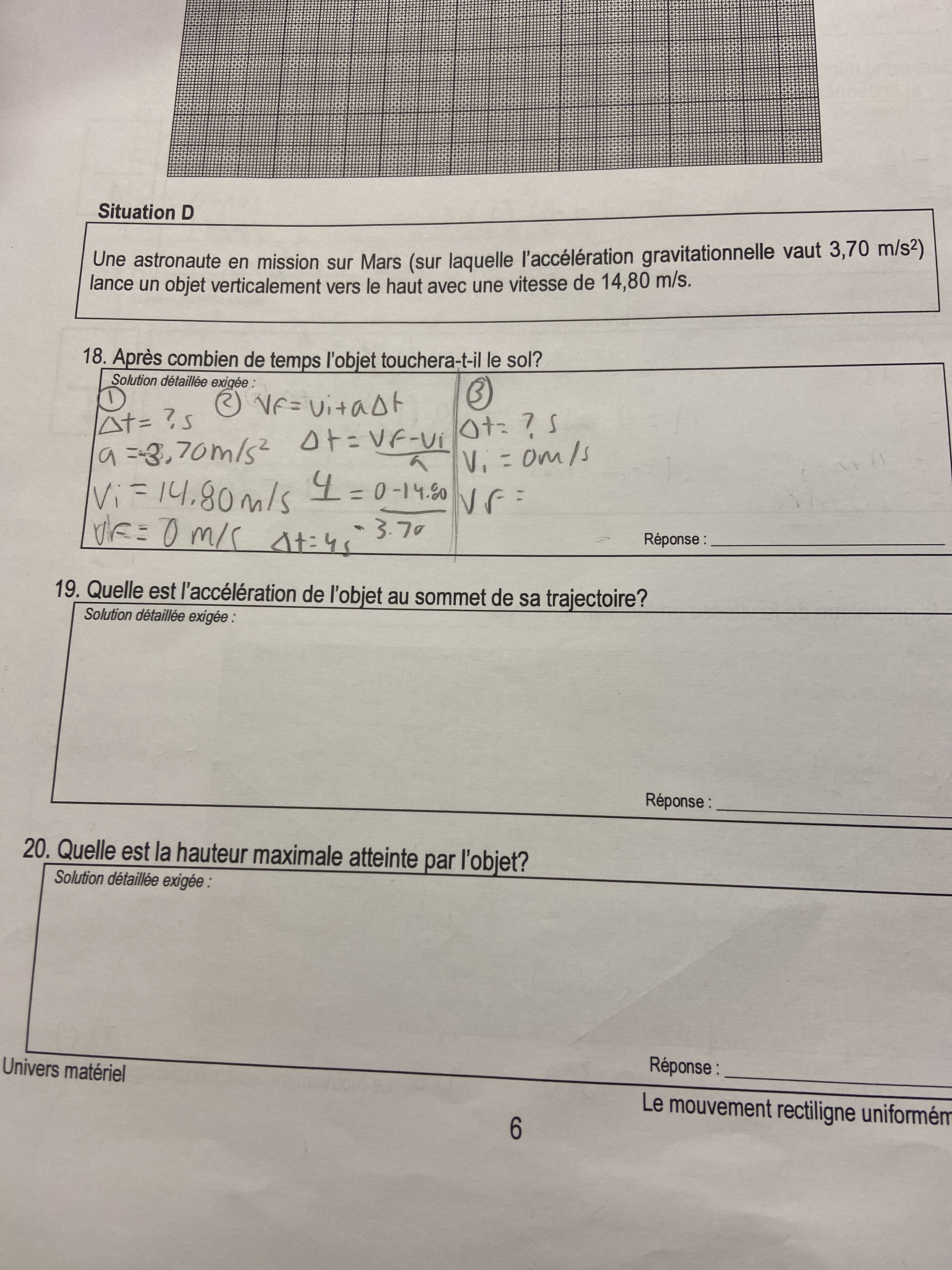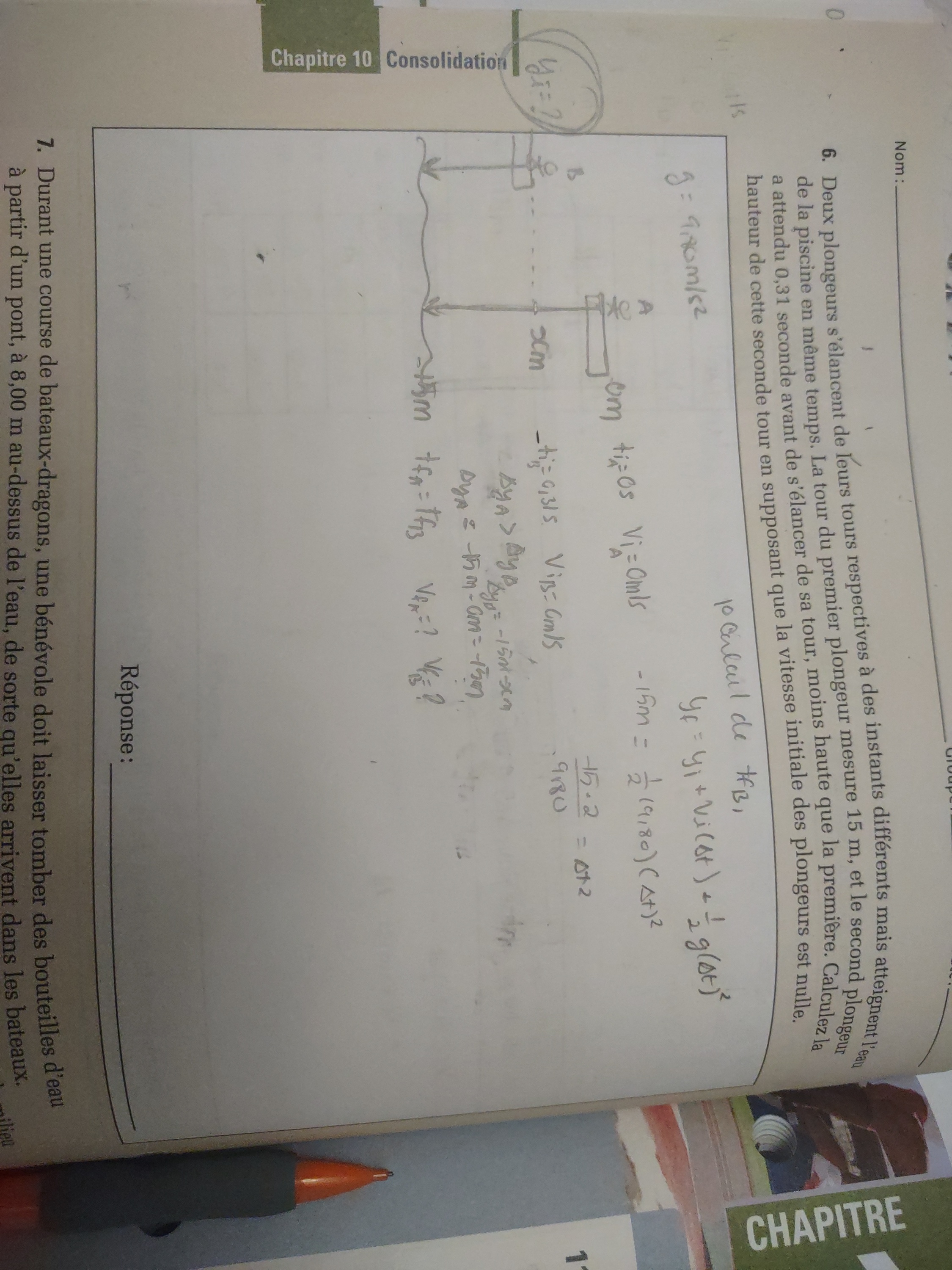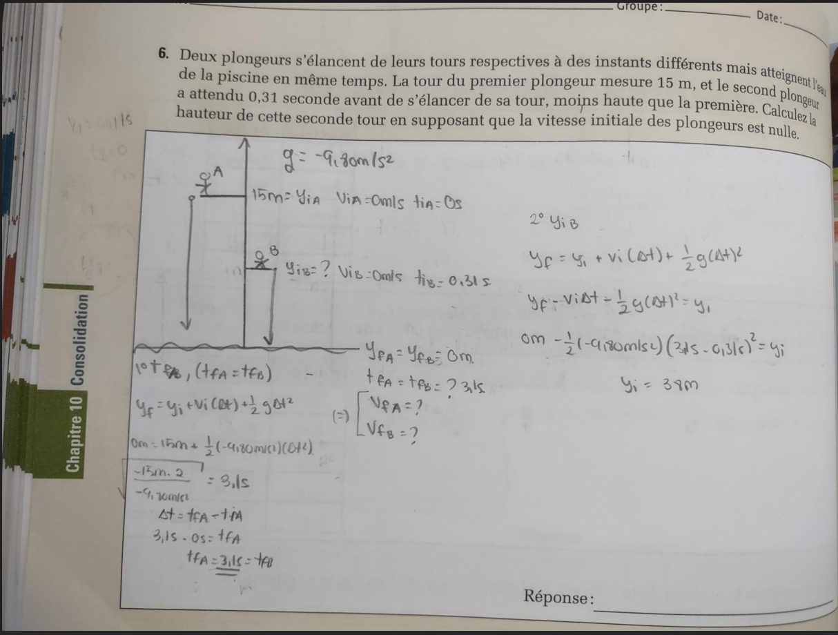 Secondaire 5 • 1aj ai fait cette nouvelle demarche , mais j obtiens une hauteur plus grande que le plongeur 1 ...