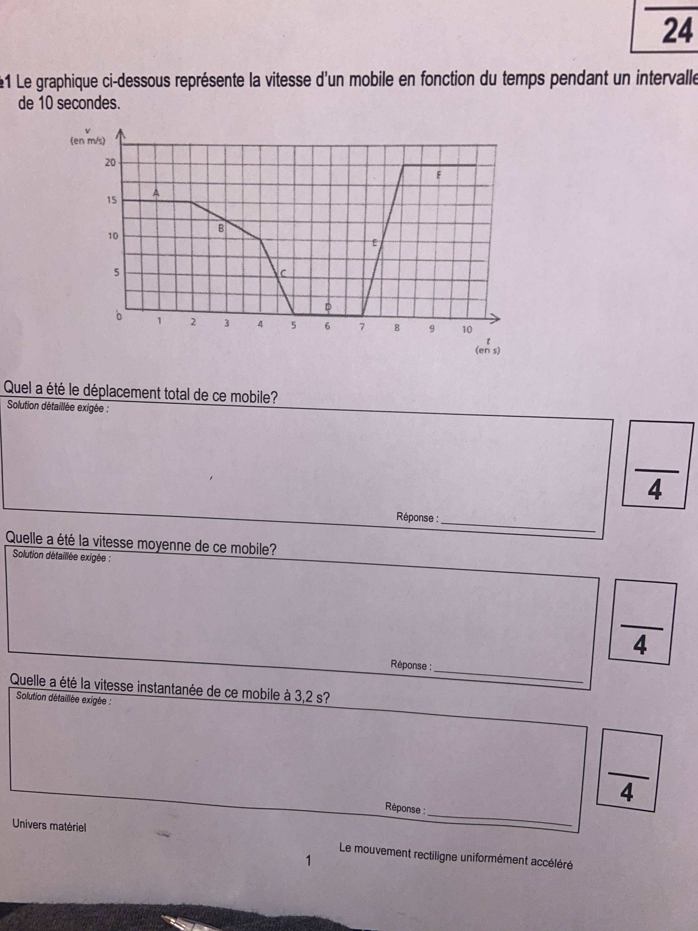 Secondaire 5 • 1aQue représente l'aire sous la courbe d'un graphique de la position en fonction du temps ?