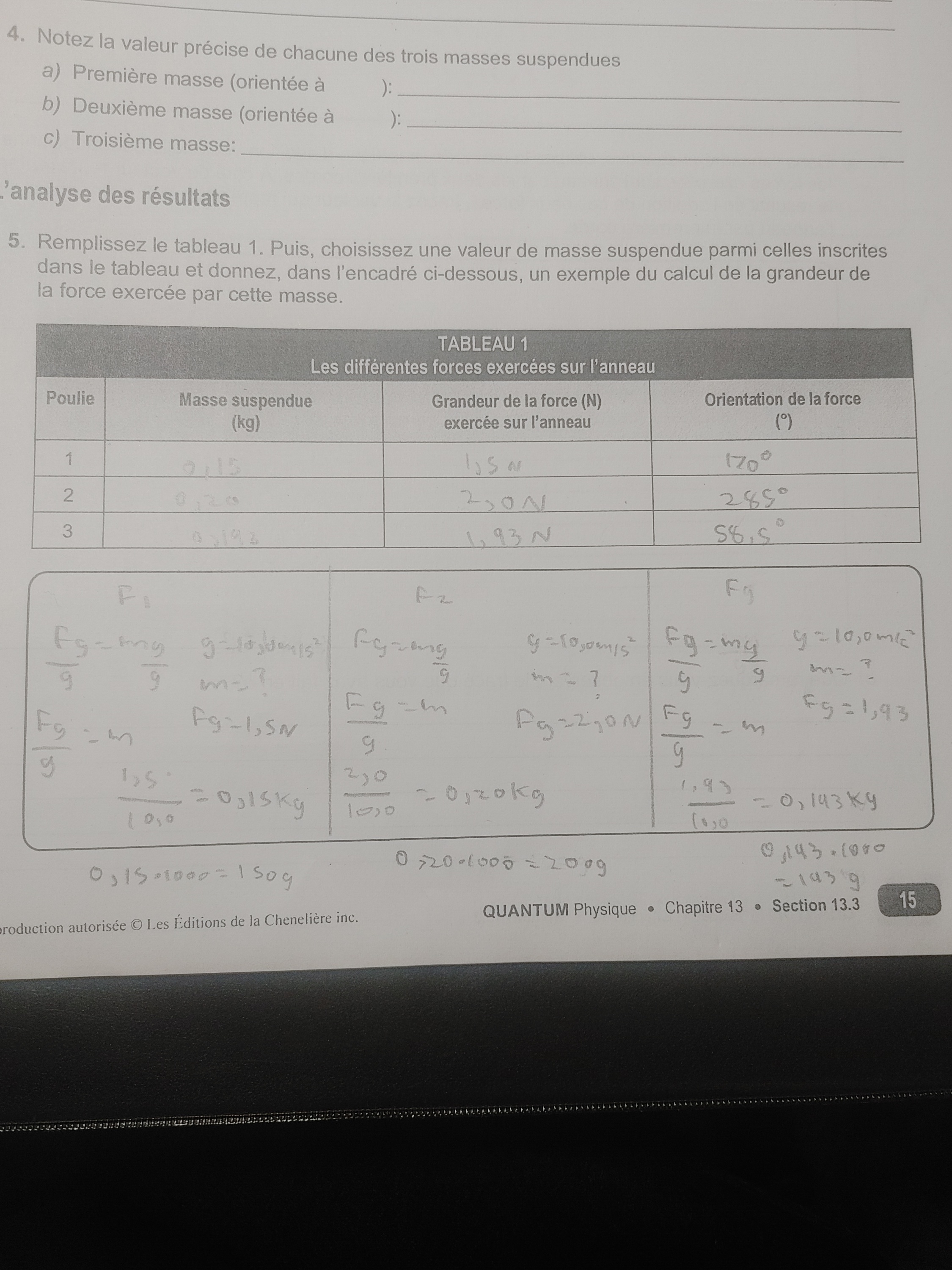 Secondaire 5 • 1aBonjour! Ma classe et moi avons fais un laboratoire de physique et le proffesseur veut qu'on fasse ces numéros suivants avec ces résultats qu'on a obtenue. J'ai beaucoup besoin d'aide..