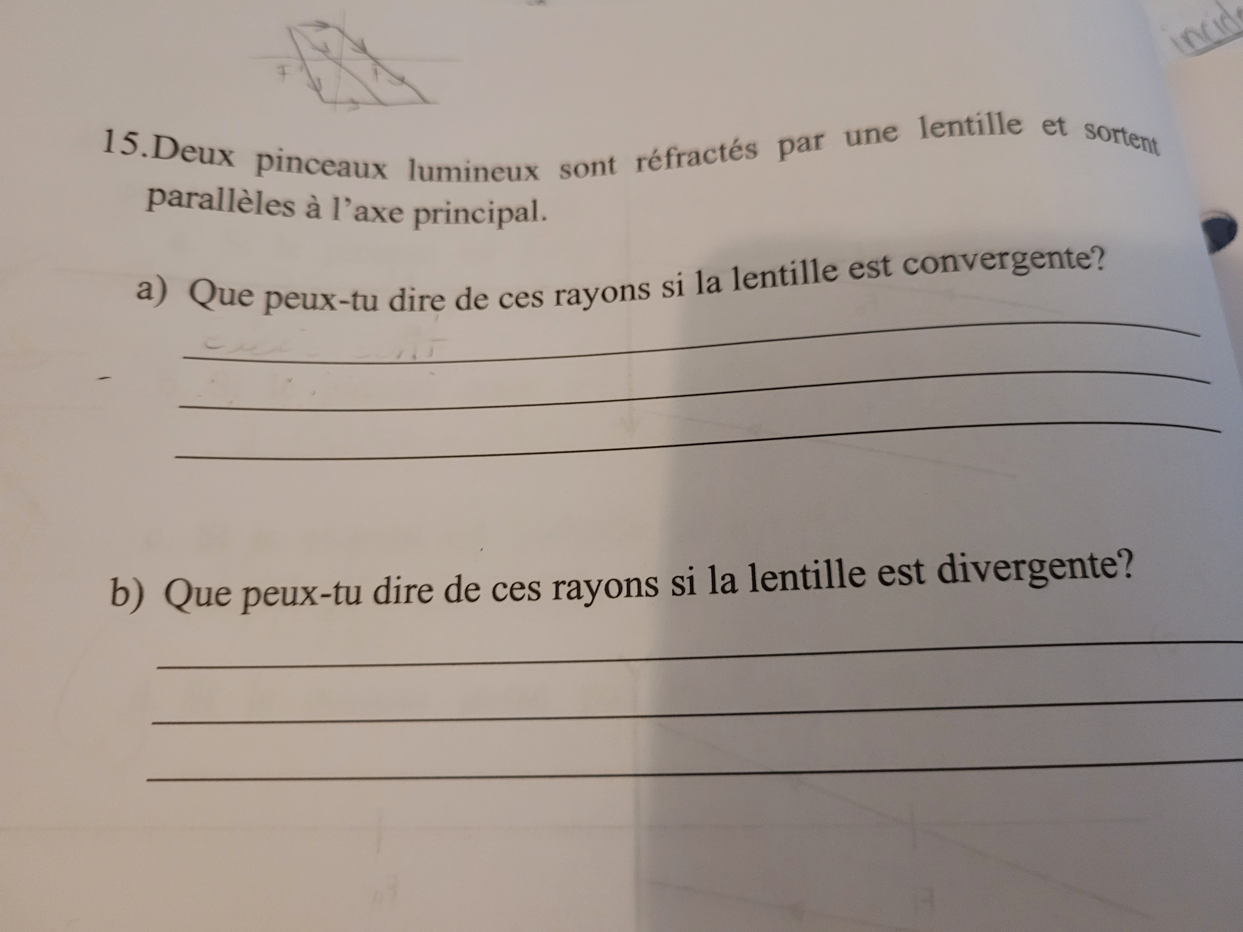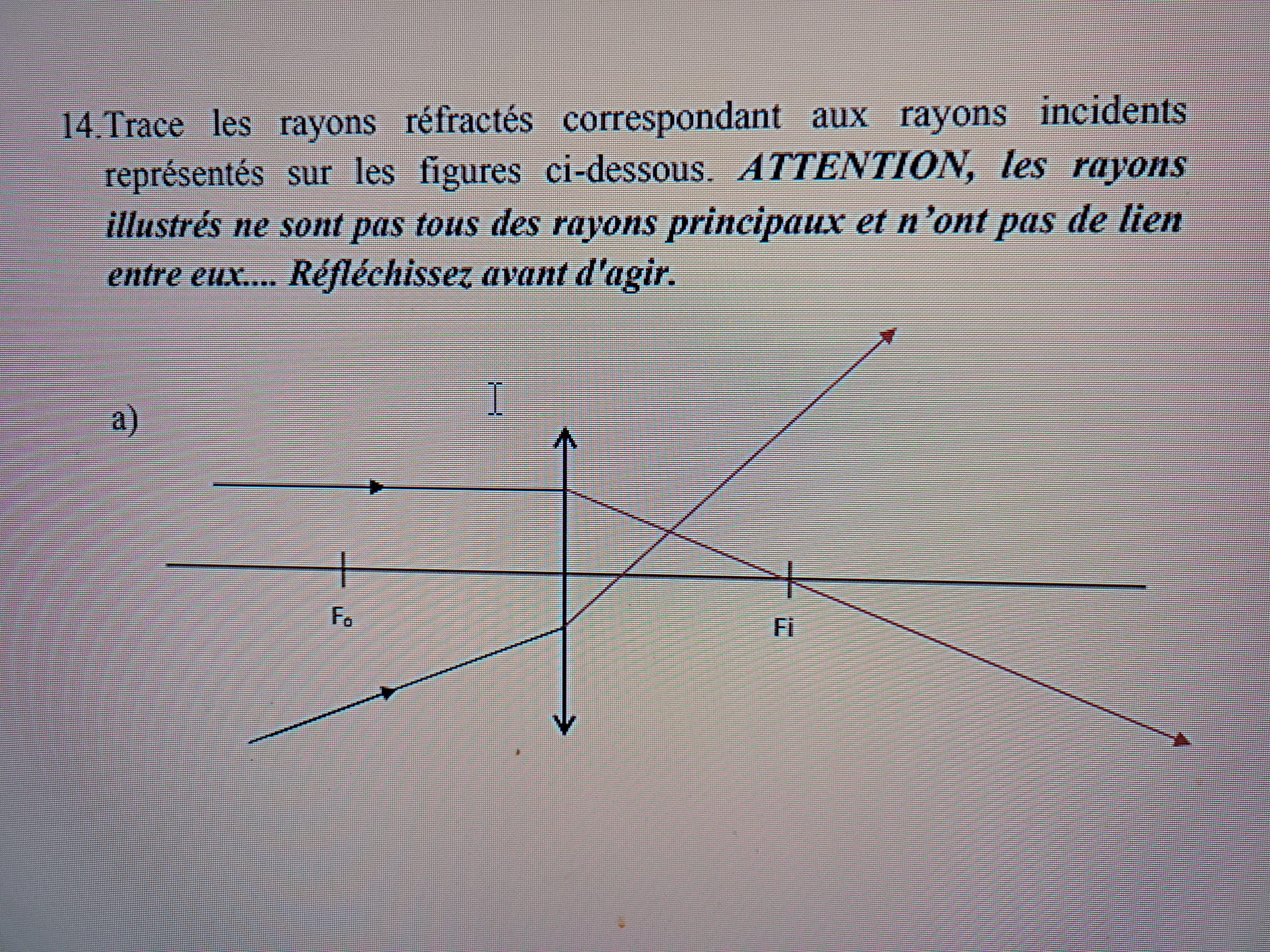 Secondaire 5 • 1aBonjour, ici on a tracé 2 rayons principales pour trouver l image mais faut il ne pas en tracer 3? Aussi, est ce qu il faut que les 3 rayons se croisent au même endroit pour savoir si c'est un image ou est ce que il peut seulement en avoir 2. Merci