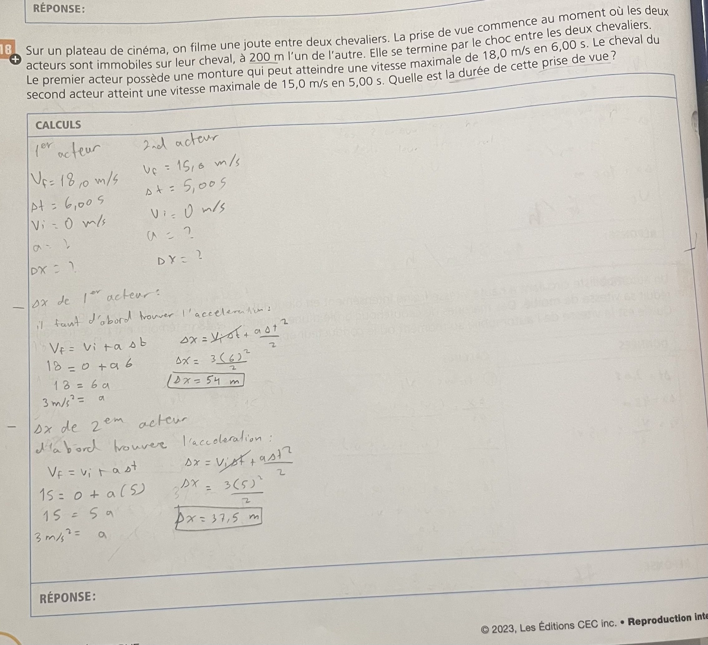 Secondaire 5 • 1abonsoir, j'arrive pas a repondre a ce probleme et a trouver la durée de la prise de position. jai calculé les deplacements et les accelerations des deux acteurs, pouvez vous m'aider a continuer svp? merci