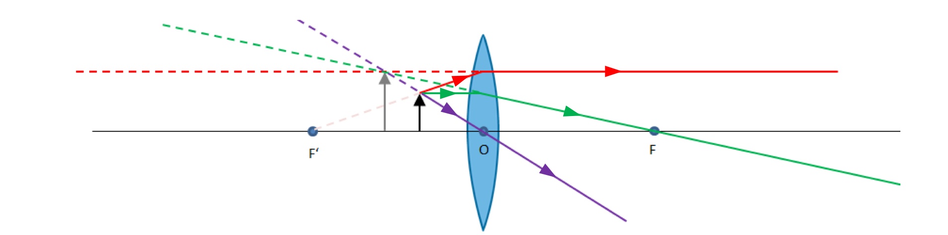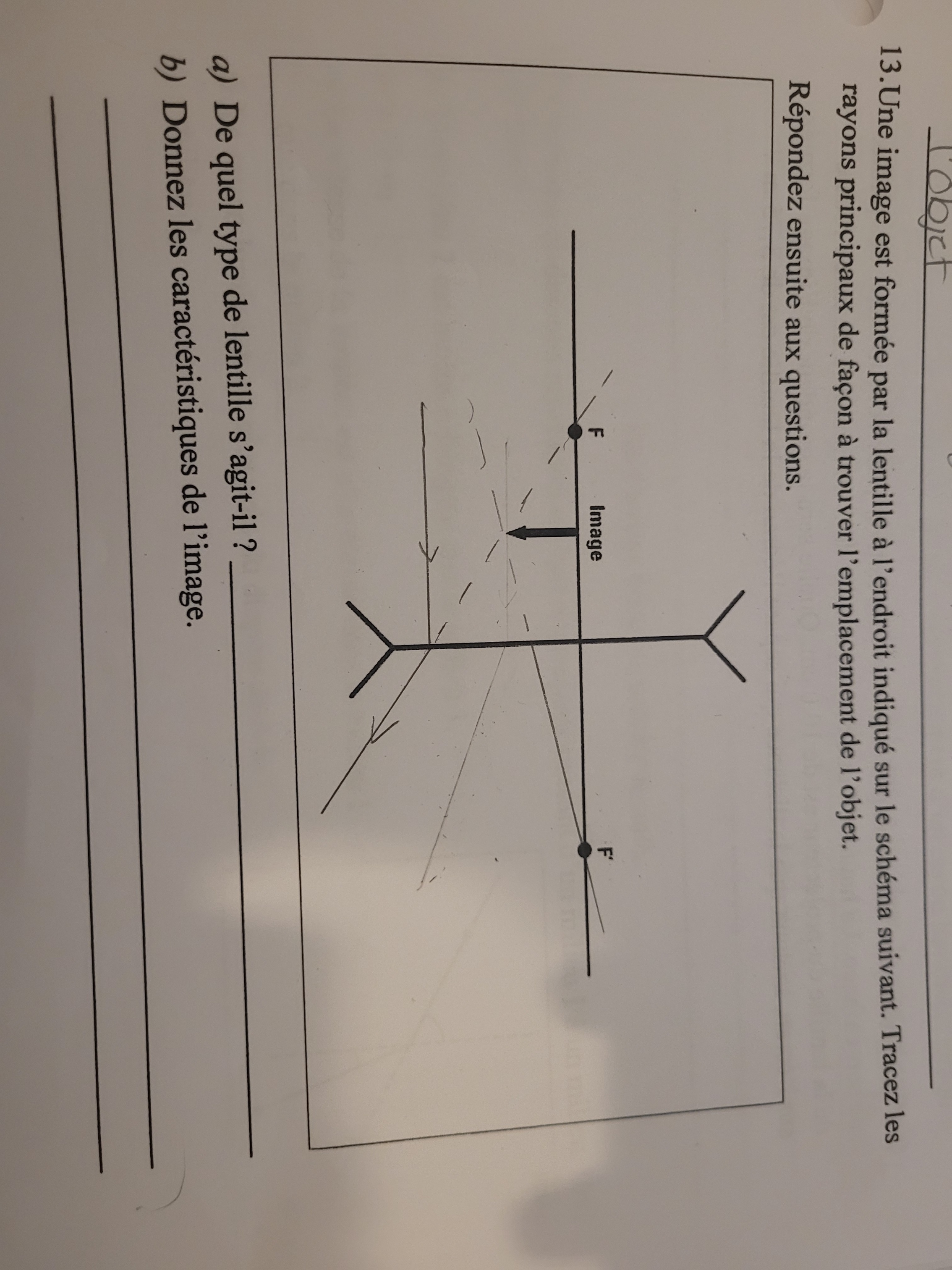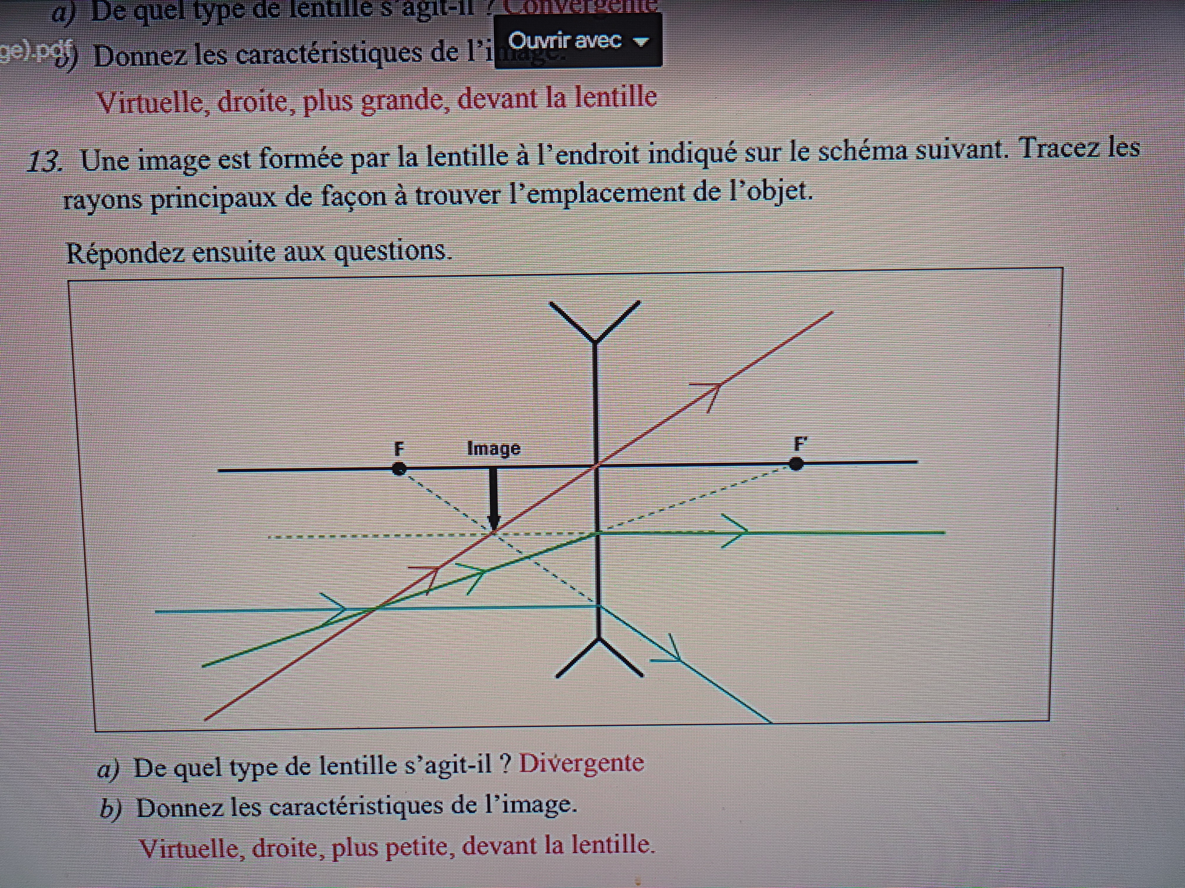 Secondaire 5 • 1aBonjour, ici , je sais que c est une lentille divergente et je connais les 4 caractéristiques des images. Mais j'ai de la difficulté à tracer les rayons. Svp aidez moi merci