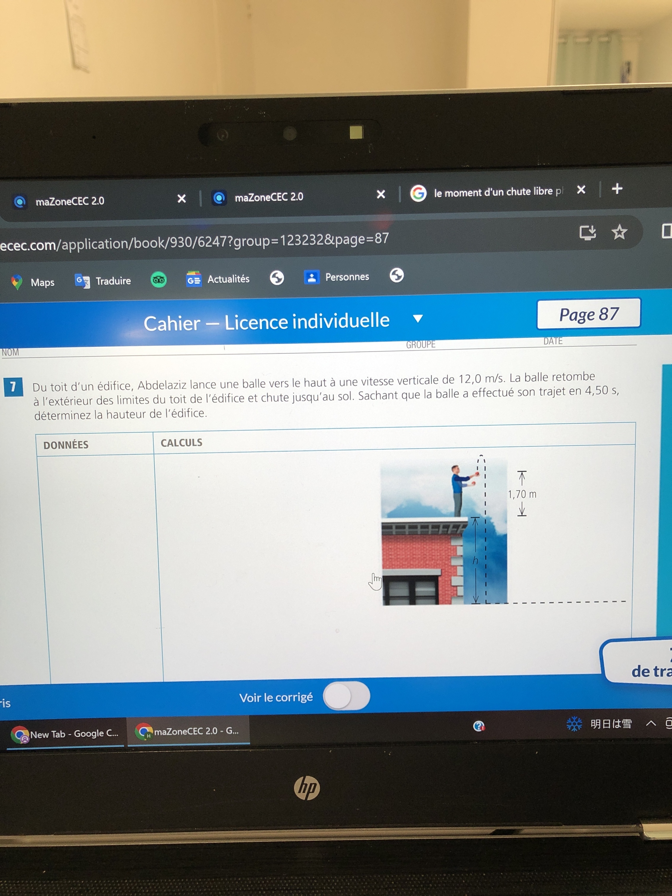 Postsecondaire • 1aURGENT : mon examen final en physique arrive prochainement mais il y a un numéro que je ne comprend pas et mon professeur n’est pas disponible donc je ne sais pas quoi faire je stress . Pouvez-vous m’aider à le faire svp mercii