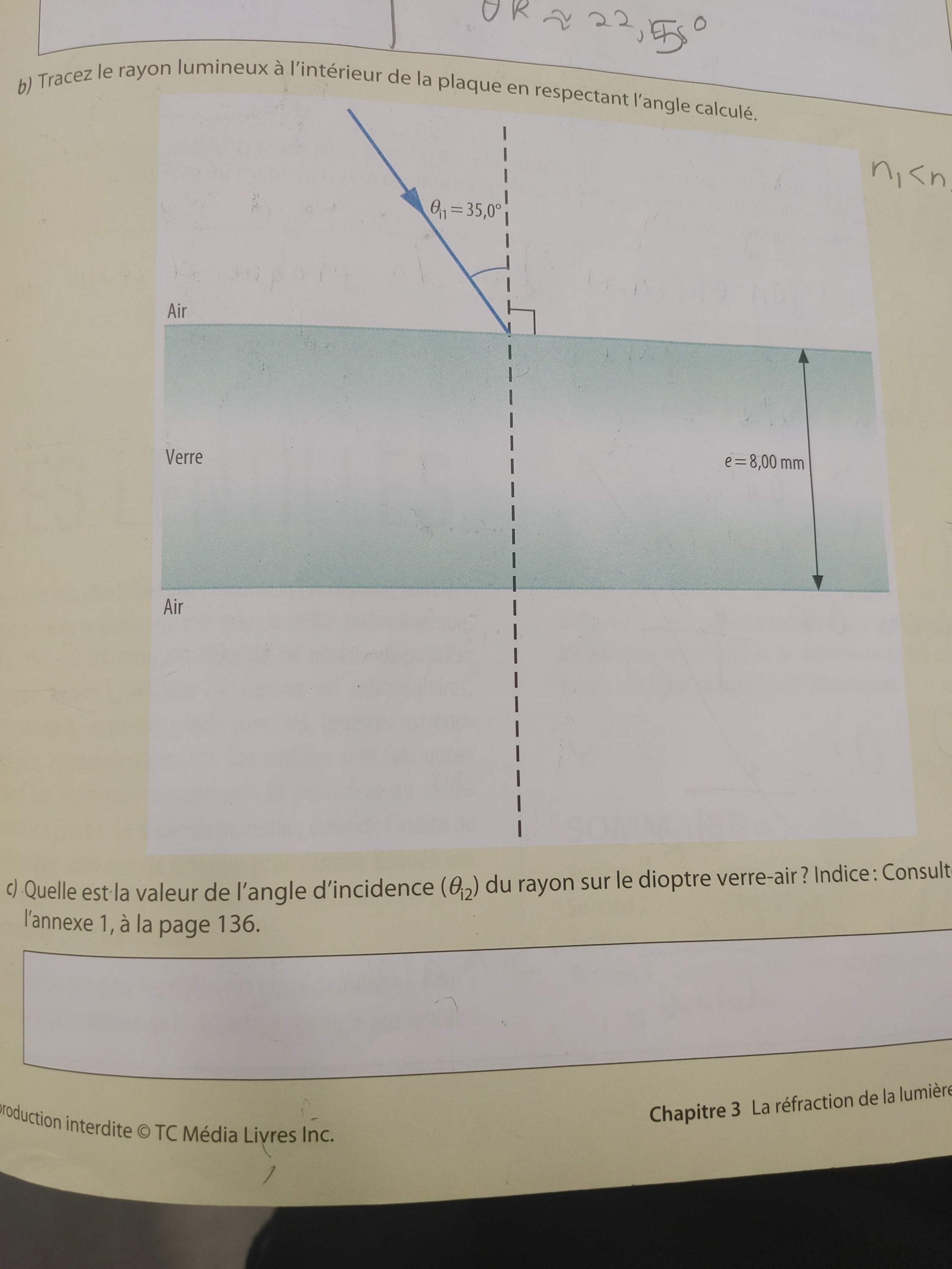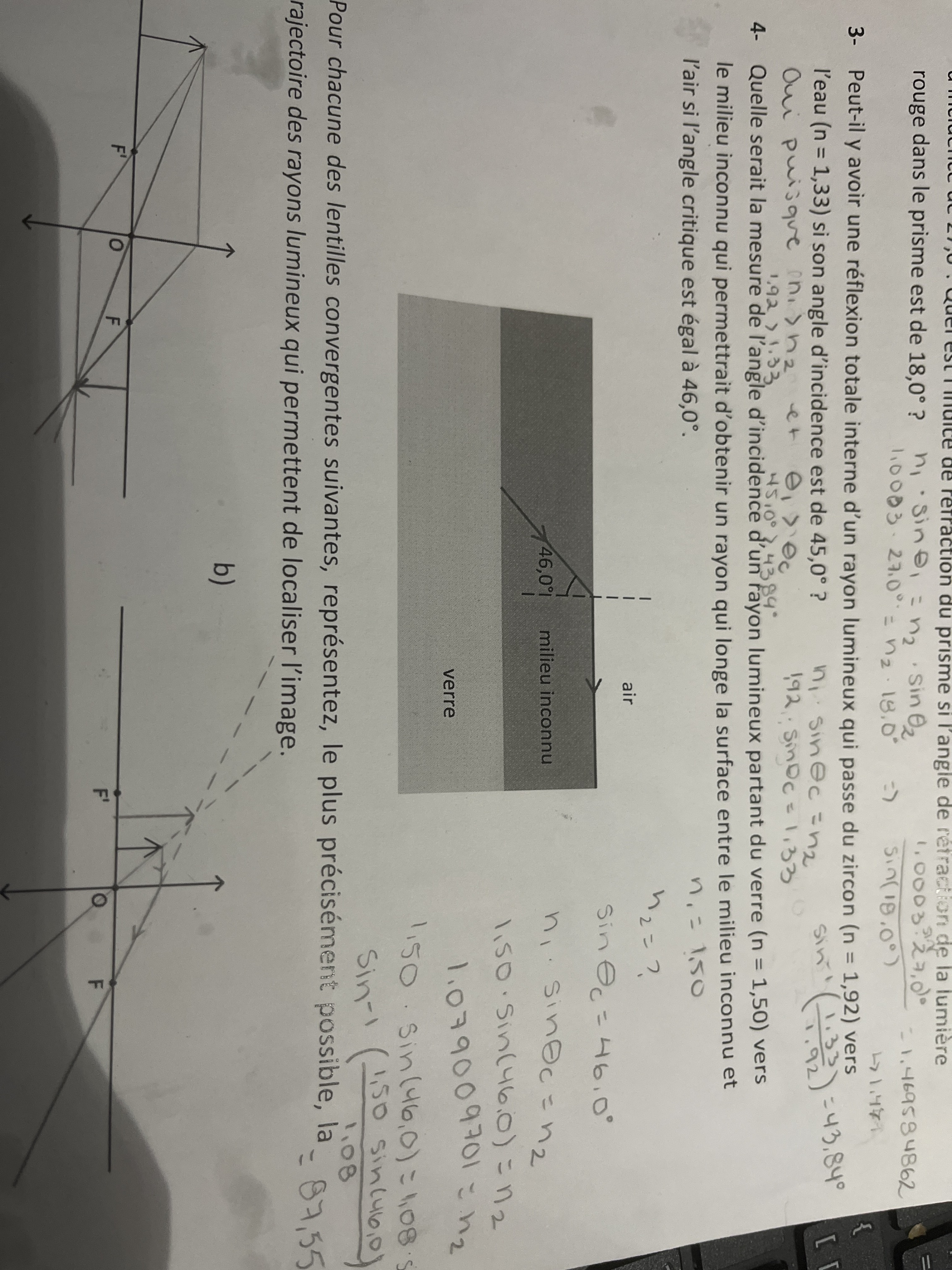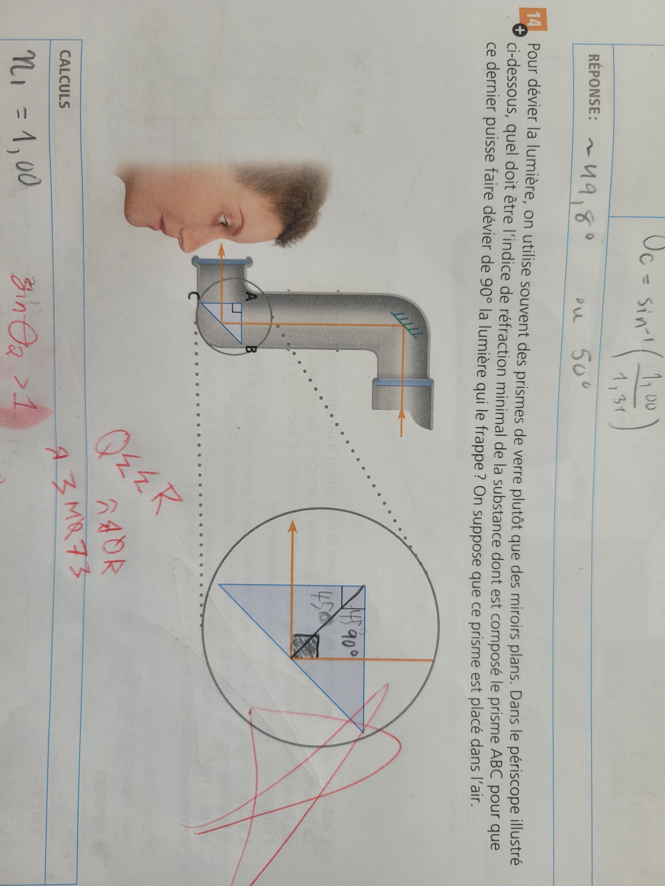 Secondaire 5 • 1aBonjoouur je n'arrive pas à comprendre la réflexion totale interne et surtout cet exercice m. Pouvez-m'aider svp . Merci beaucoup