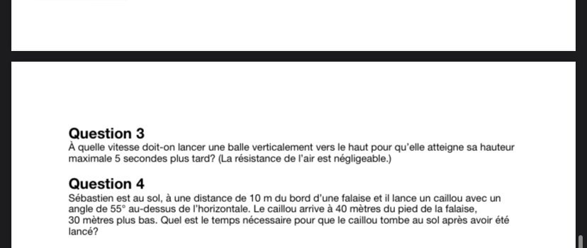Secondaire 5 • 2aBonsoir alloprof, pouvez vous m'aider a résoudre ce problème de physique svp? Je trouve de la difficulté à le faire. Merci bcp!