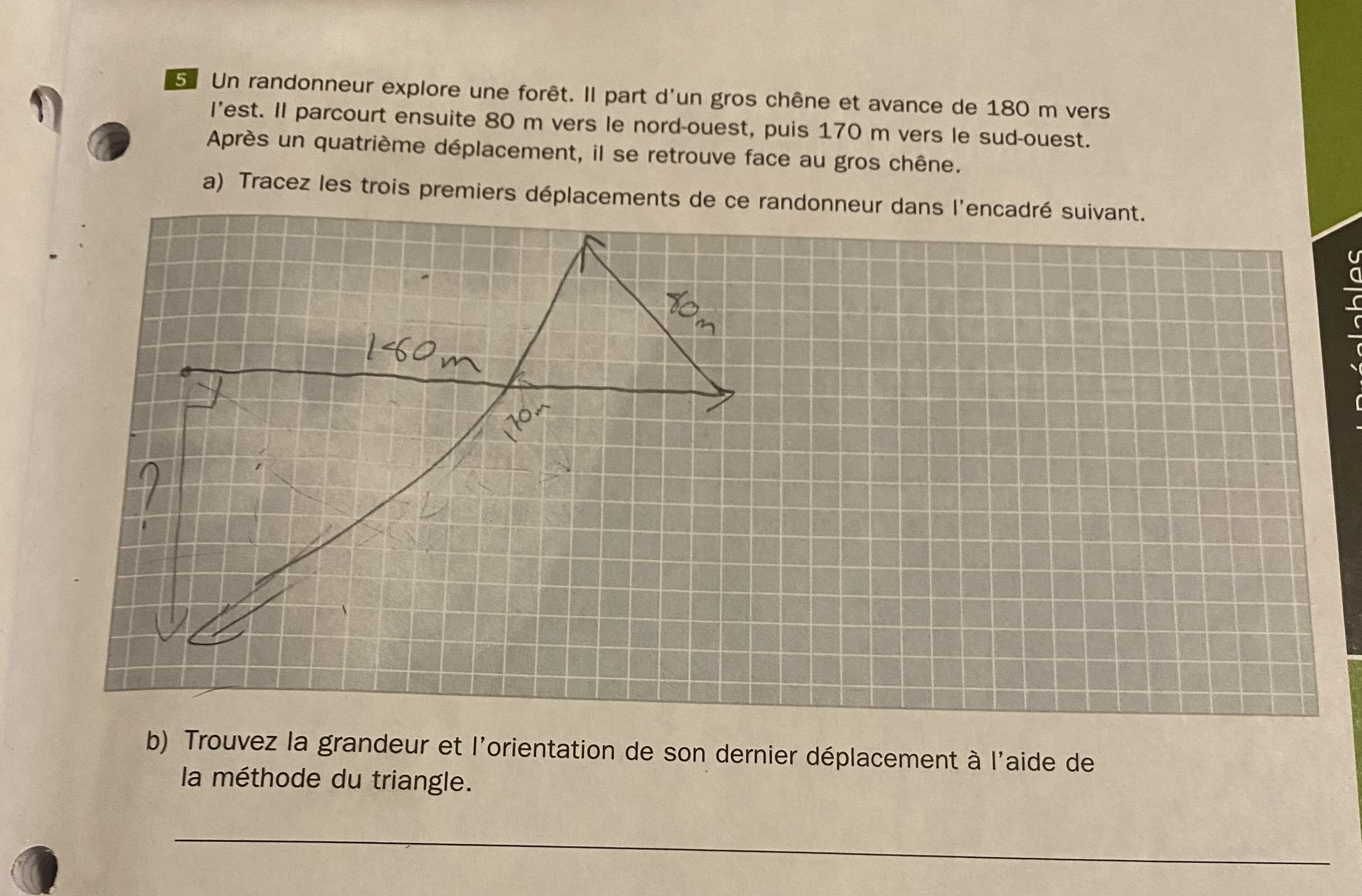 Secondaire 5 • 6mBonjour, pouvez-vous me dire s'il y a présence d'erreurs dans l'exercice que j'ai fait? Je ne suis pas certaine, surtout en ce qui concerne la grandeur et son l'orientation. Merci beaucoup