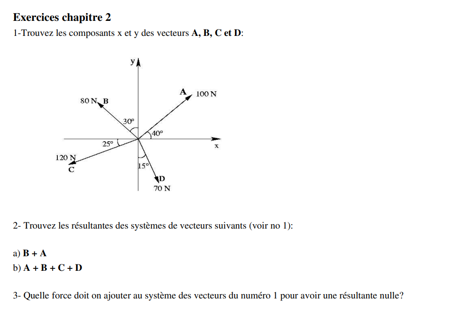 Secondaire 5 • 2aBonjour, dans le graphique que j'ai ajouté à cette page, pouvez-vous m'expliquer comment je devrais procéder afin de trouver les composantes, la magnitude et l'angle de la force 3 qui permet de maintenir l'équilibre-en d'autre most qui fait en sorte que la somme des forces est zéro? Merci beaucoup