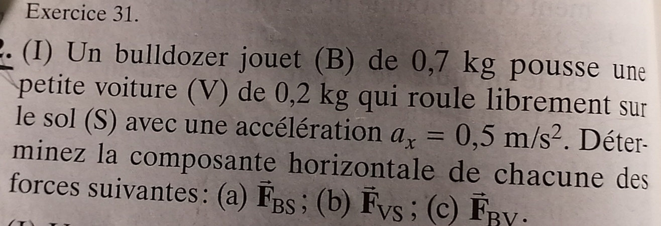 Secondaire 5 • 2aBonjour Alloprof! Pouvez vous m'aider à comprendre comment trouver la force que le sol applique sur le bulldozer et la voiture s'il vous plaît?