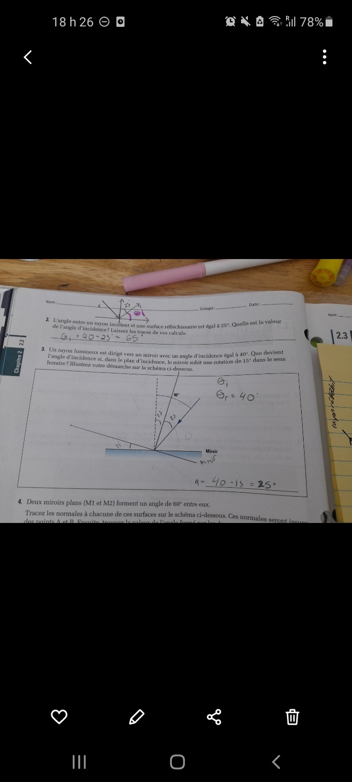 Secondaire 5 • 2aAllo, Ramzi. Ma question, c'est plutôt sur la trajectoire des rayons lumineux sur des mirroirs plans lorsque les faisceaux ne sont pas parallèles. Voici un exemple:Comme vous pouvez le voir, les rayons vont se converger mais aussi se faire réfléchis. Quelle serait donc la trajcetoir de ces rayons?