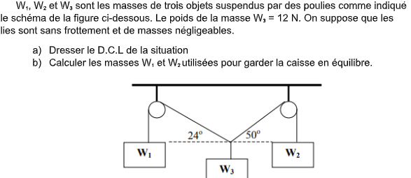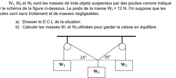 Comment je peux trouver les masses d'objets en ayant une force et des angles?