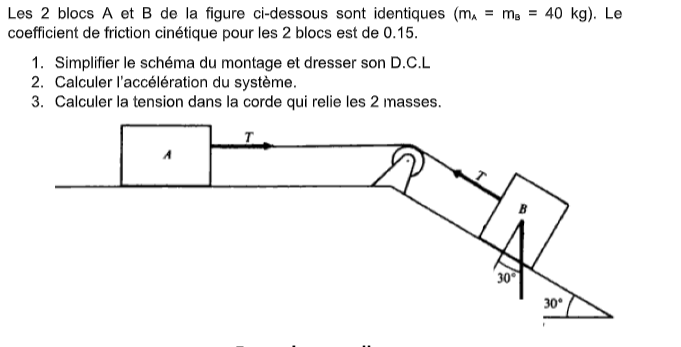 Comment calculer l'accélération et les tensions? (formules/étapes)?