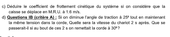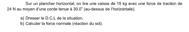 Sur un plancher horizontal, on tire une caisse de 15 kg avec une force de traction de
