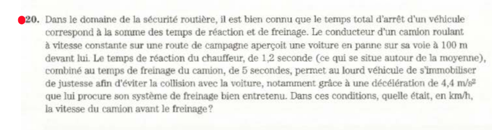 la réponse ici est 79,2 km/h mais j'obtiens 107,72 km/h en utilisant cette formule:
