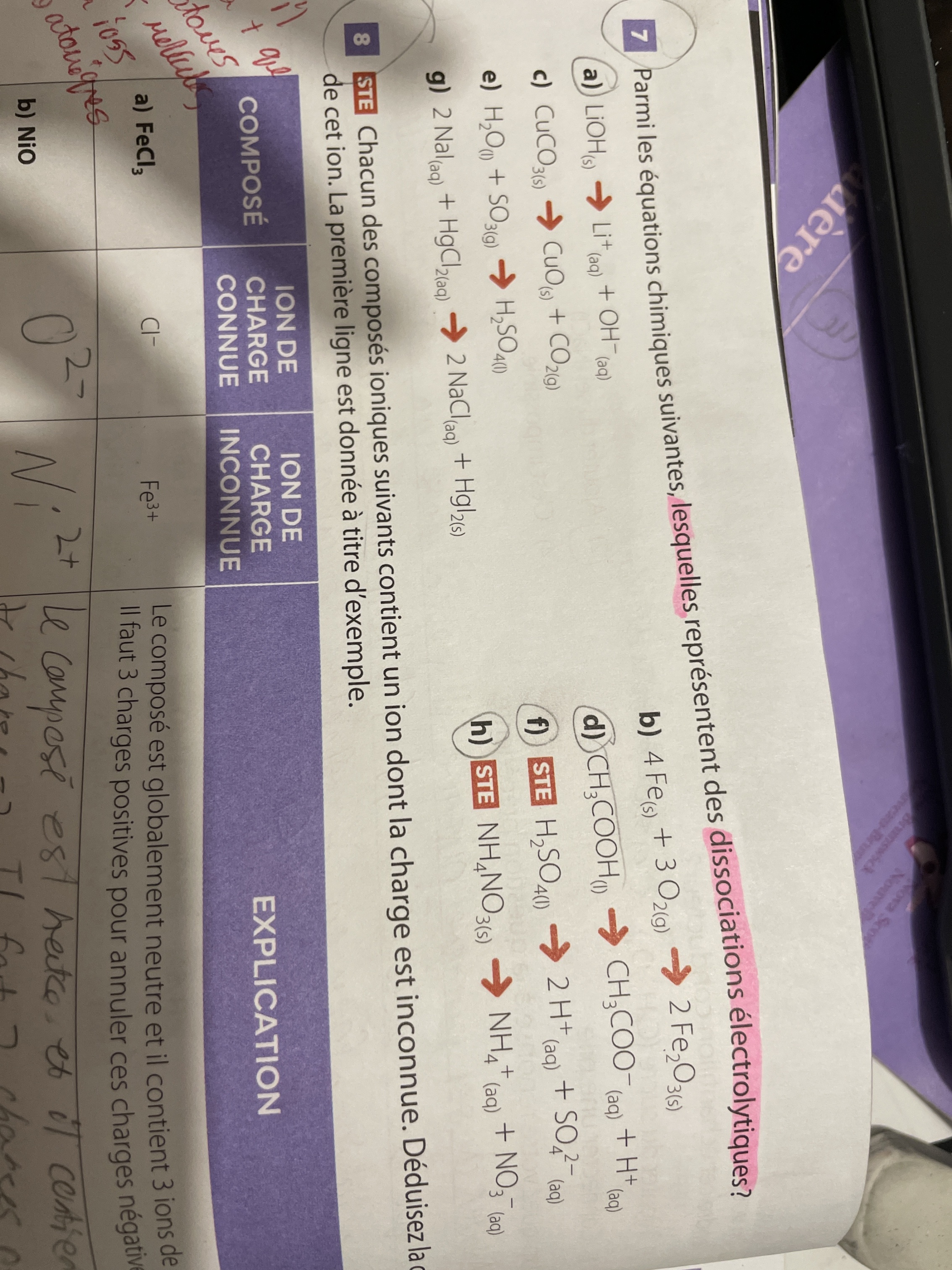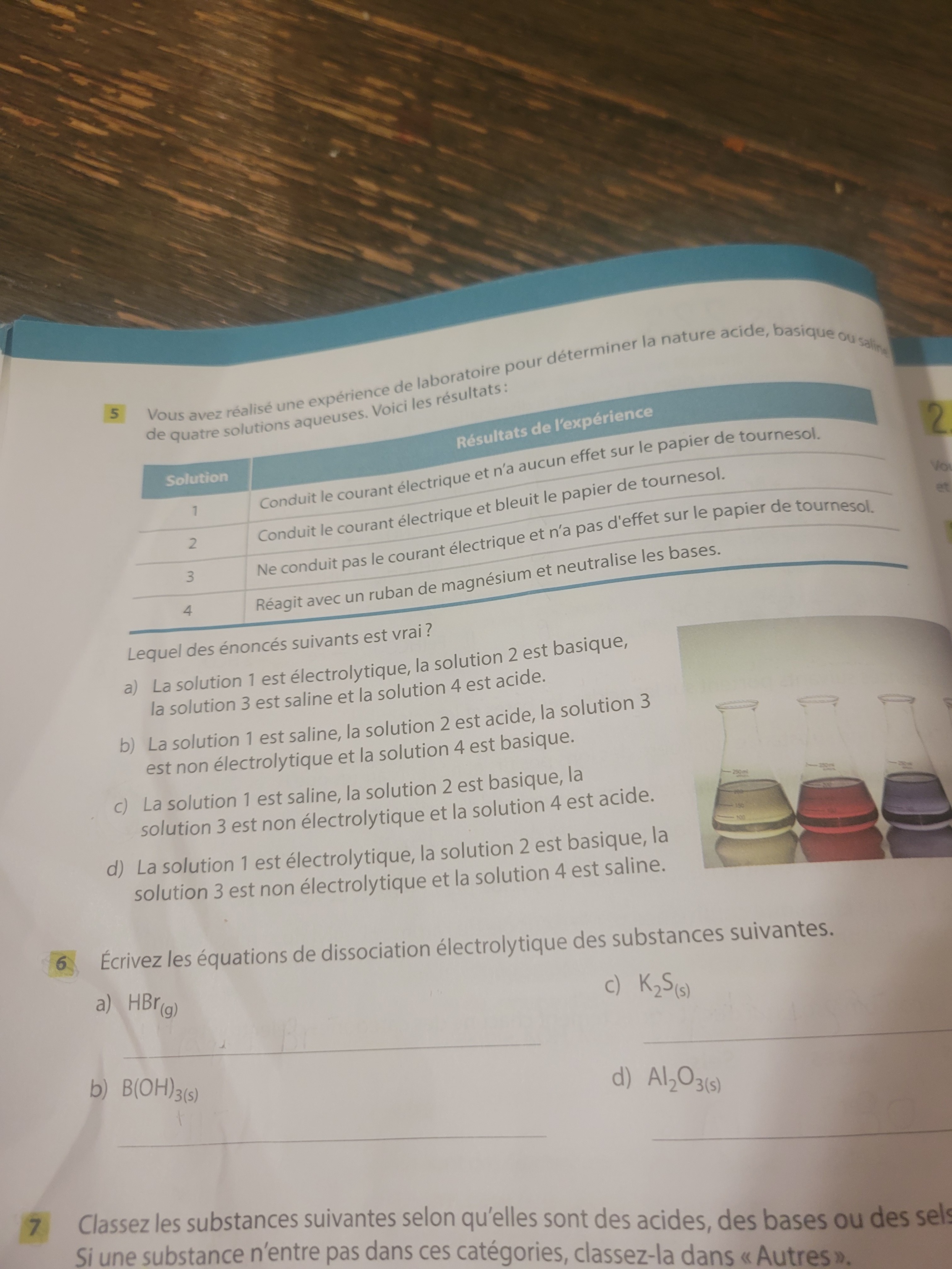 Secondaire 4 • 1aJe comprend pas le numero 6 jaimerais savoir comment faire les equation de dissociation electrolytiques.