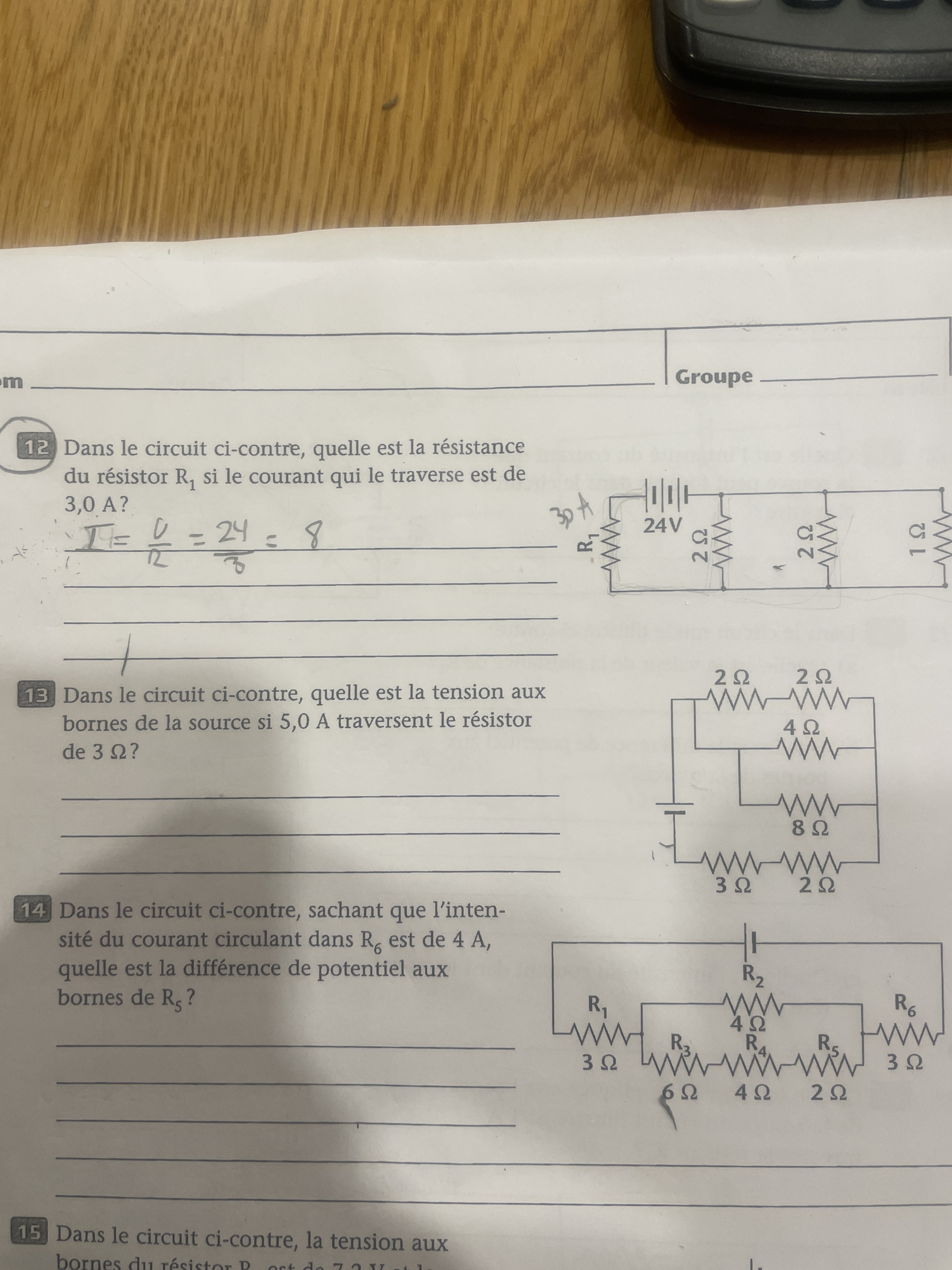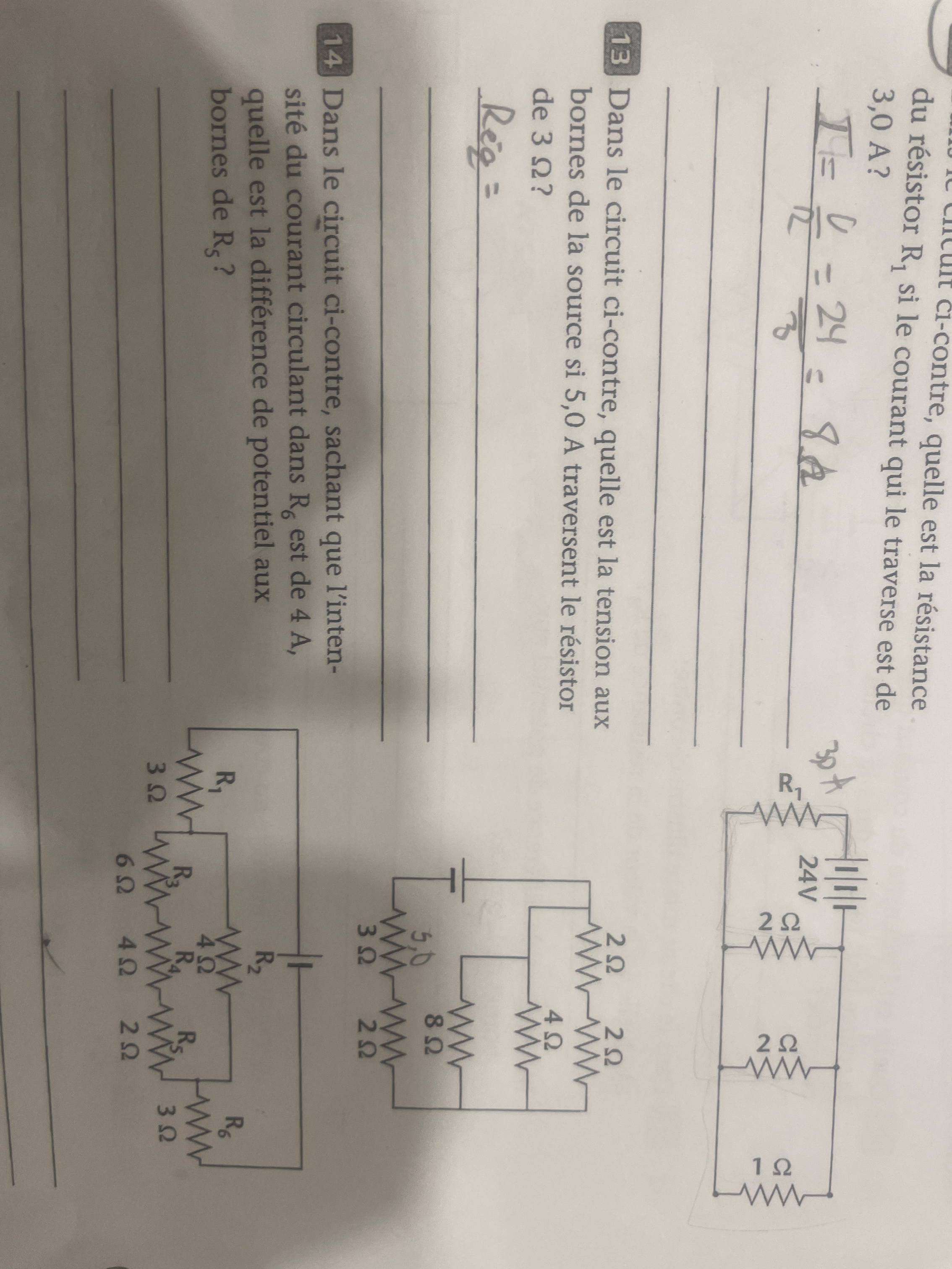 Secondaire 3 • 1mJe comprend pas le 13.Et pouvais vous m’aider avec comment distinguer les partie du circuit mixte pour comprendrequelle est en série et quel est en parallèle.