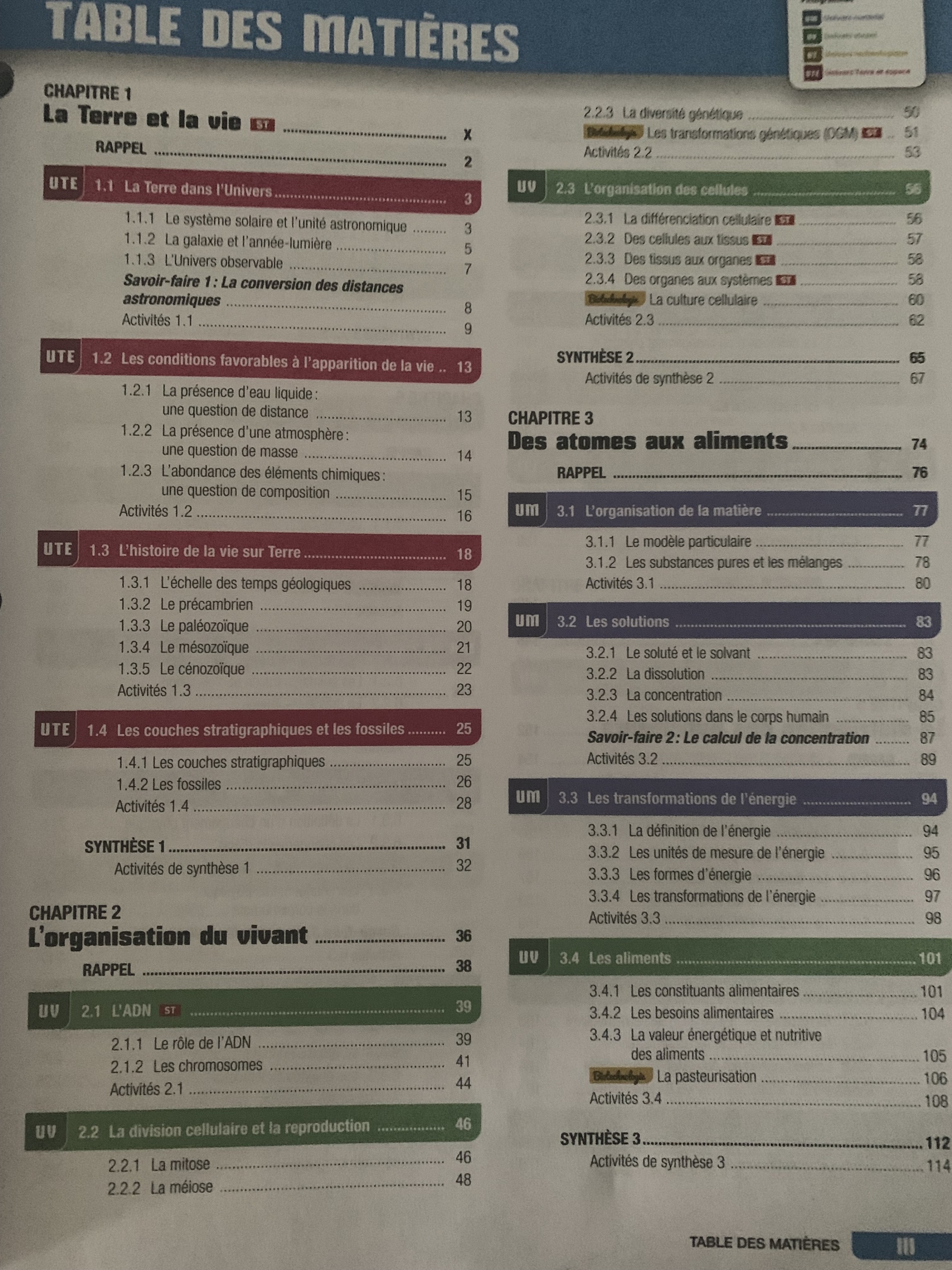 je dois étudier chapitre 1 et 2 en scienceJ’ai fais un schéma avec tous les sous titre pour l’etude