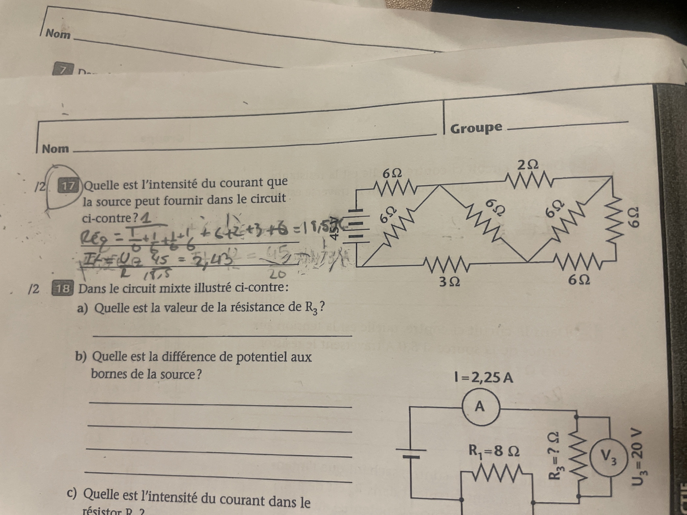 Secondaire 3 • 1mEst ce que vous pouvez m’aider avec le question 17.Je sais pas quel resistor est en parallèle et quel est en serie