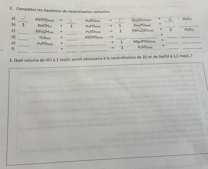 Secondaire 4 • 1aJe ne comprend pas la question 2 et 3.. je ne sais pas comment faire une neutralisation..