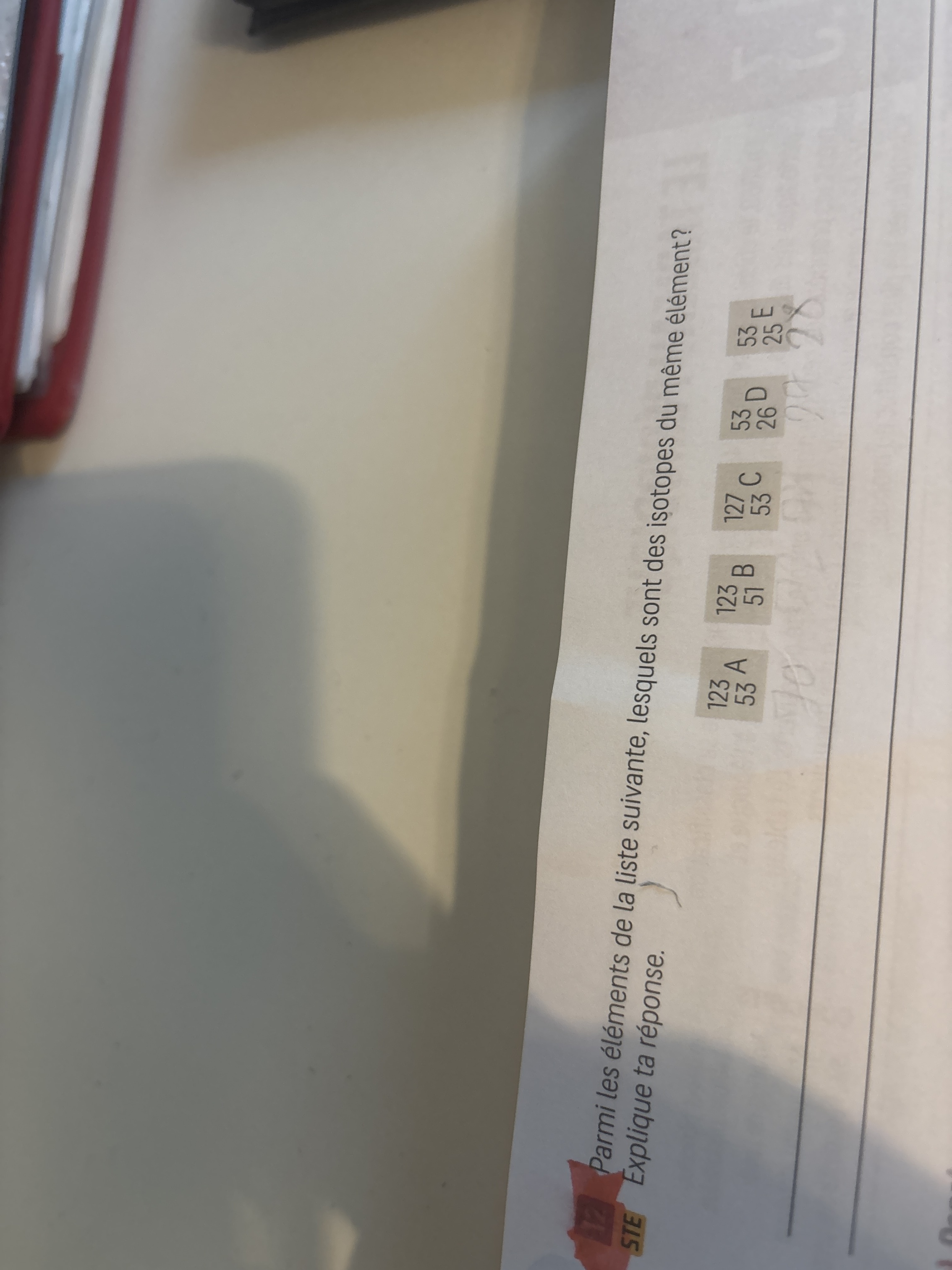 Secondaire 4 • 2mJe ne comprend pas la question, comment trouver un isotope du même élément et quesqu’un isotope?
