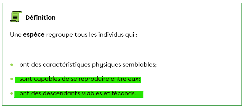 - En fait, j'ai une question par rapport à les espèces. Quand il dit :Que veut dire : sont capables de se reproduire entre eux et ont des descendants viables et féconds ?