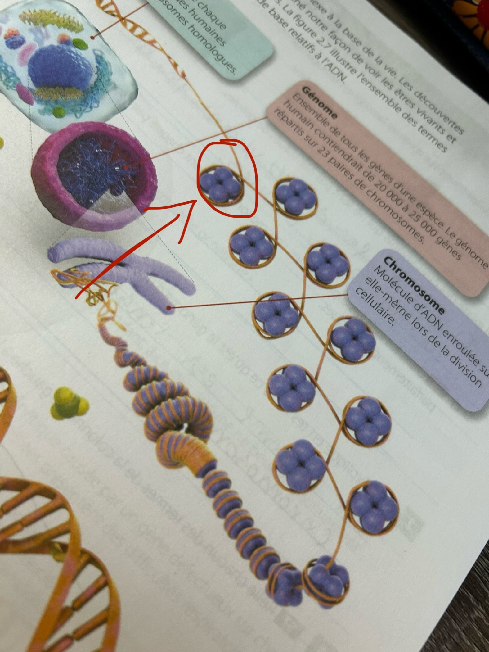 Secondaire 3 • 3mSi l’ADN s’enroule sur elle même, c quoi les boules violettes?