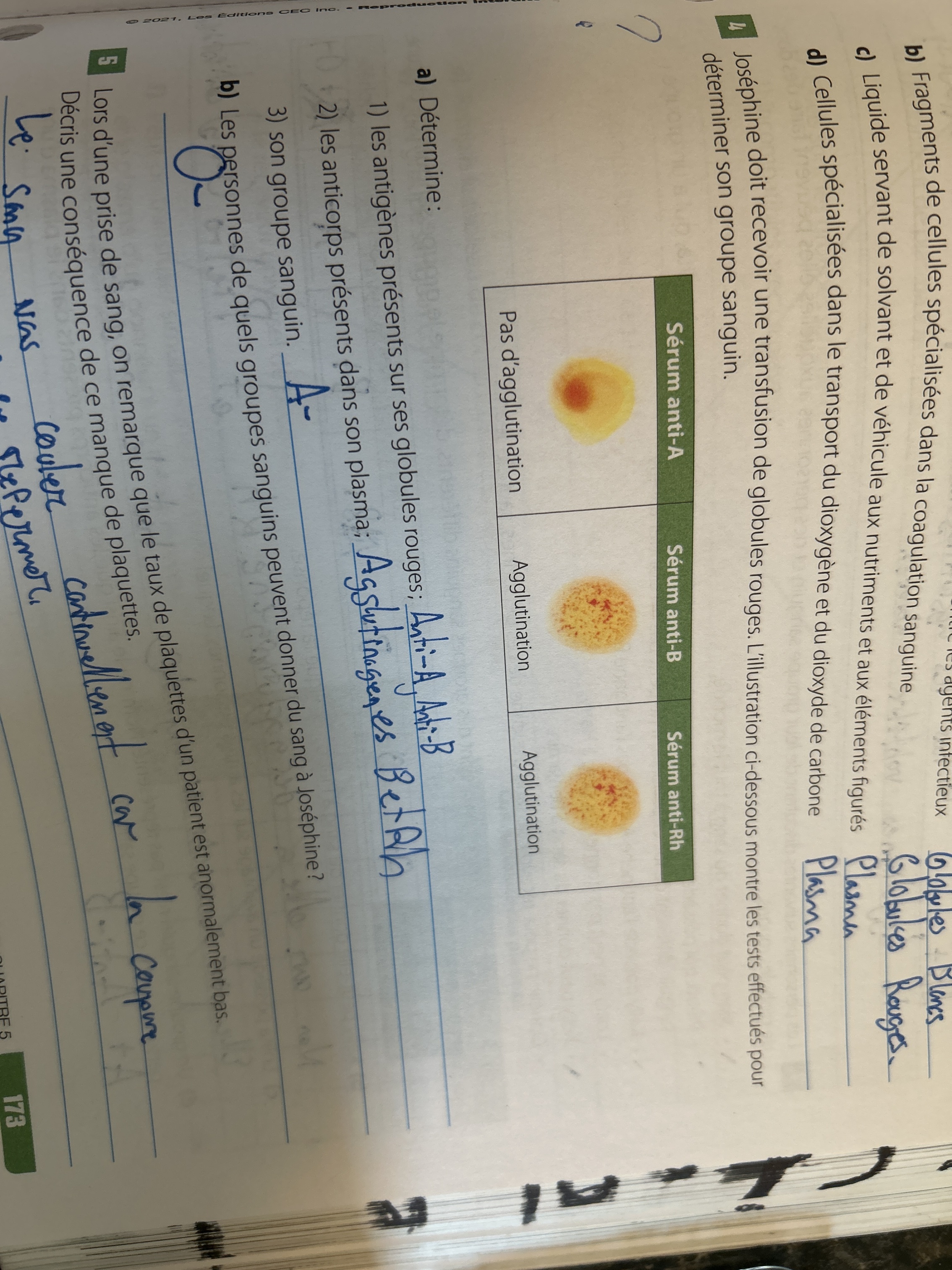 c’est le cahier de mon frère et selon moi il s’est trompé dans sa réponse et le groupe sanguin est le b+