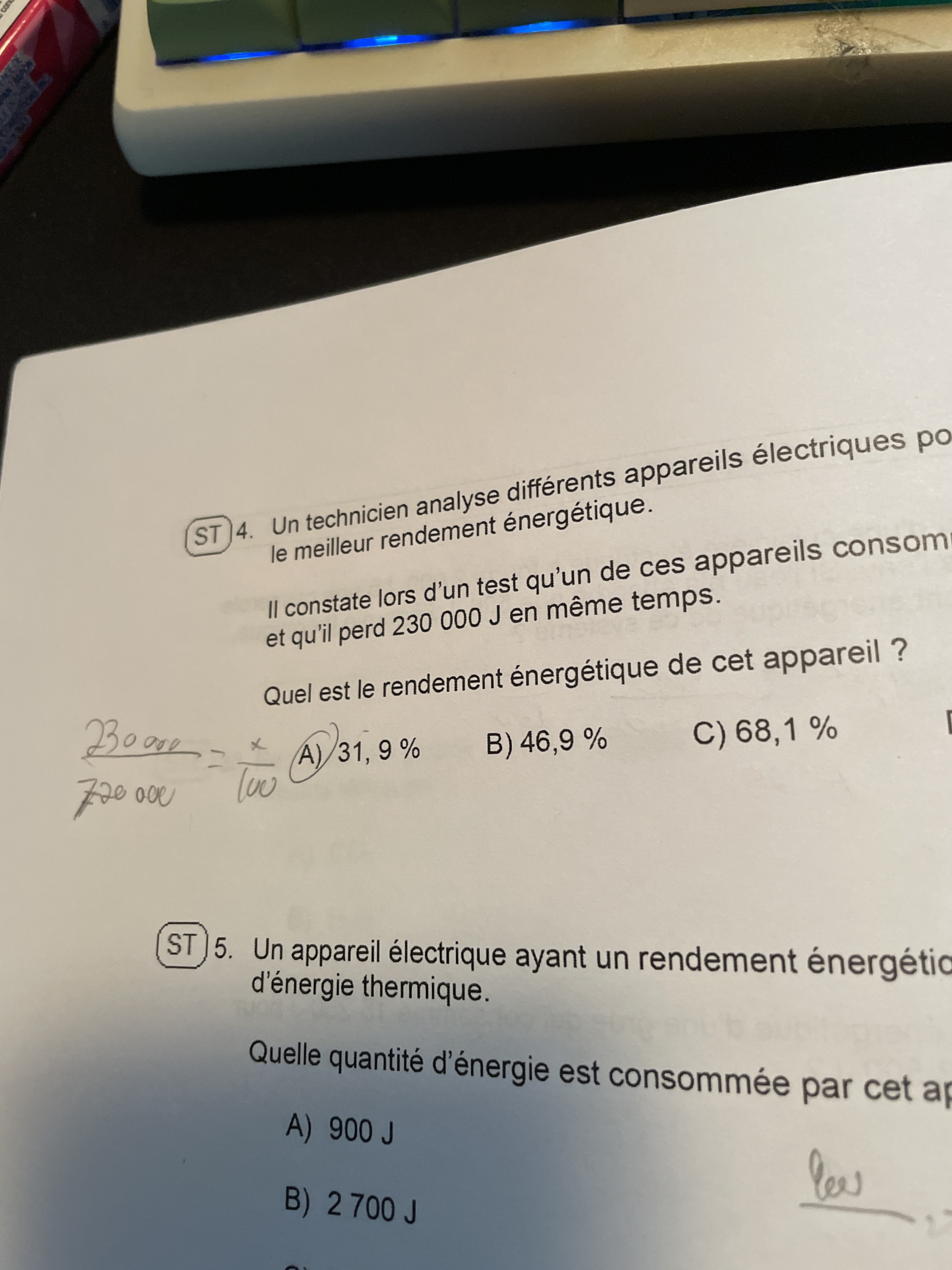 Secondaire 4 • 6mBonjour, j’ai une question parce que je ne comprends pas comment faire un bilan énergétique. Je ne sais pas quelles étapes suivre, ni comment organiser mes données ou mes calculs. Parfois je vois des exemples dans mon cahier, mais je ne comprends pas d’où viennent les chiffres ou quoi mettre en premier. Est-ce qu’il faut apprendre des formules par cœur pour l’examen du ministère, ou il y a une logique qu’il faut comprendre ?