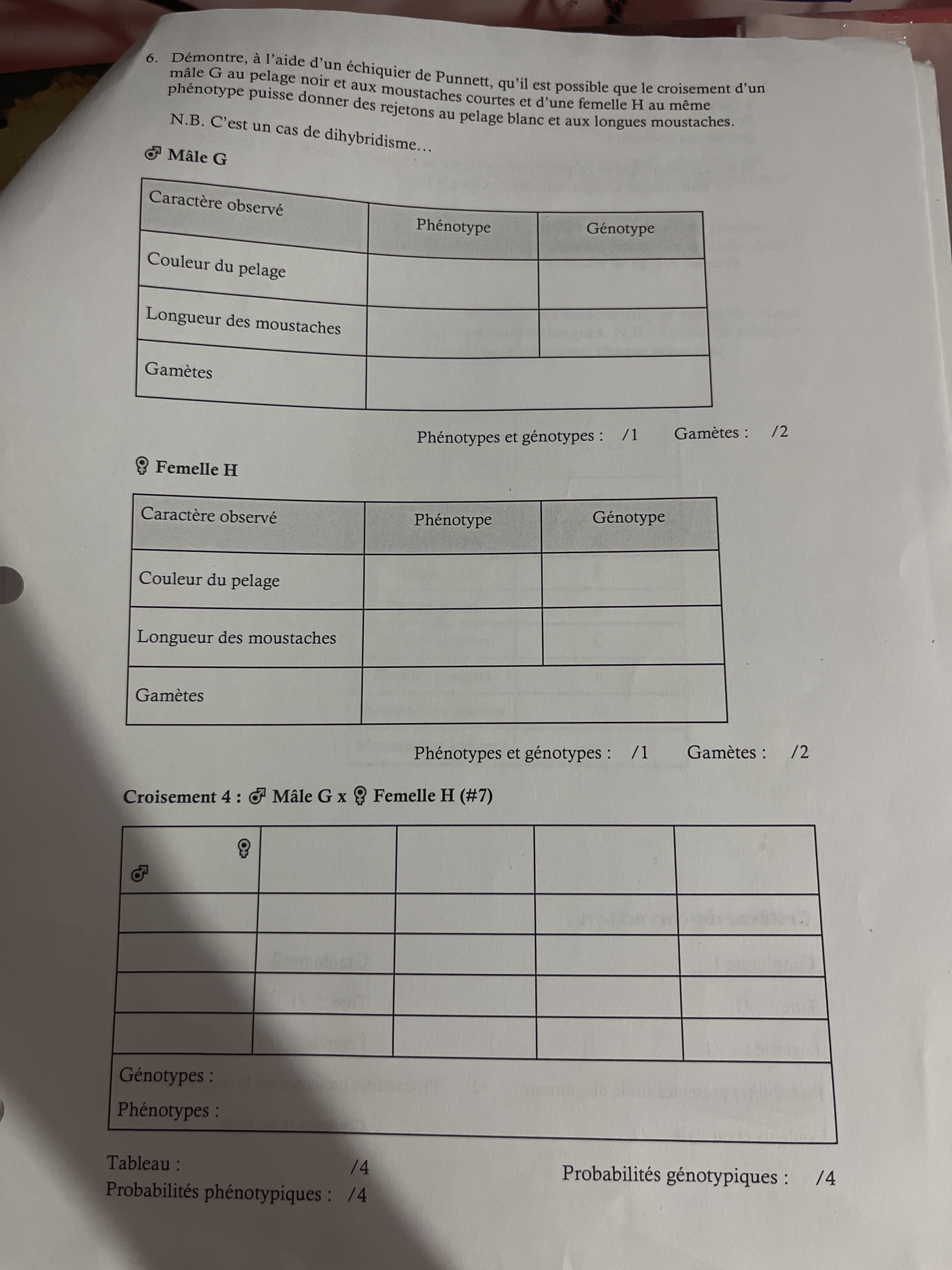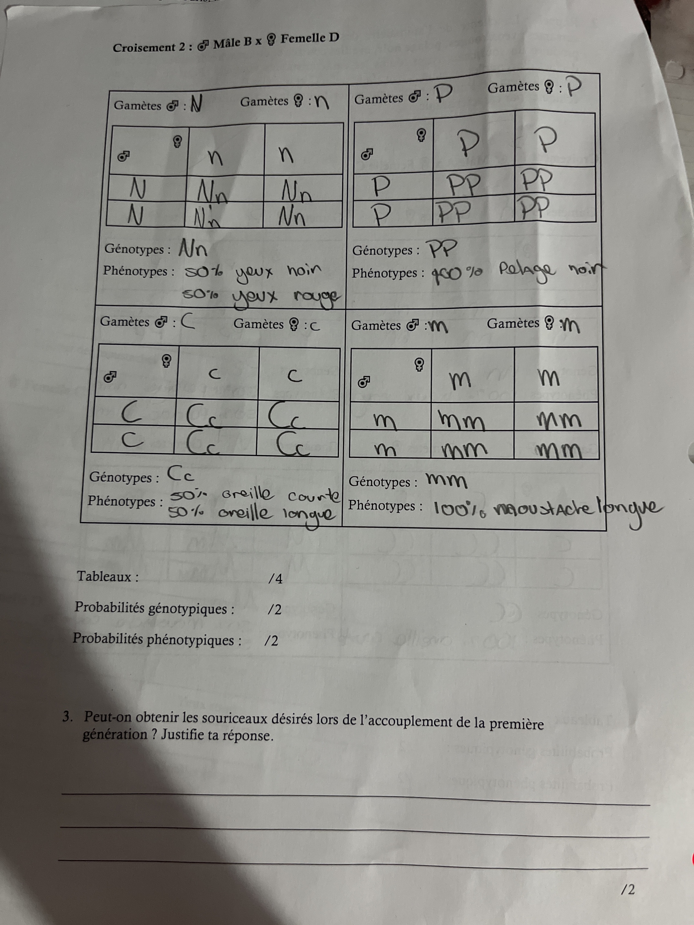 Secondaire 4 • 3aje ne comprend pas comment faire des croisement génétique je voudrais bien une explications et savoir quel erreur aurais-je pu faire svp ?